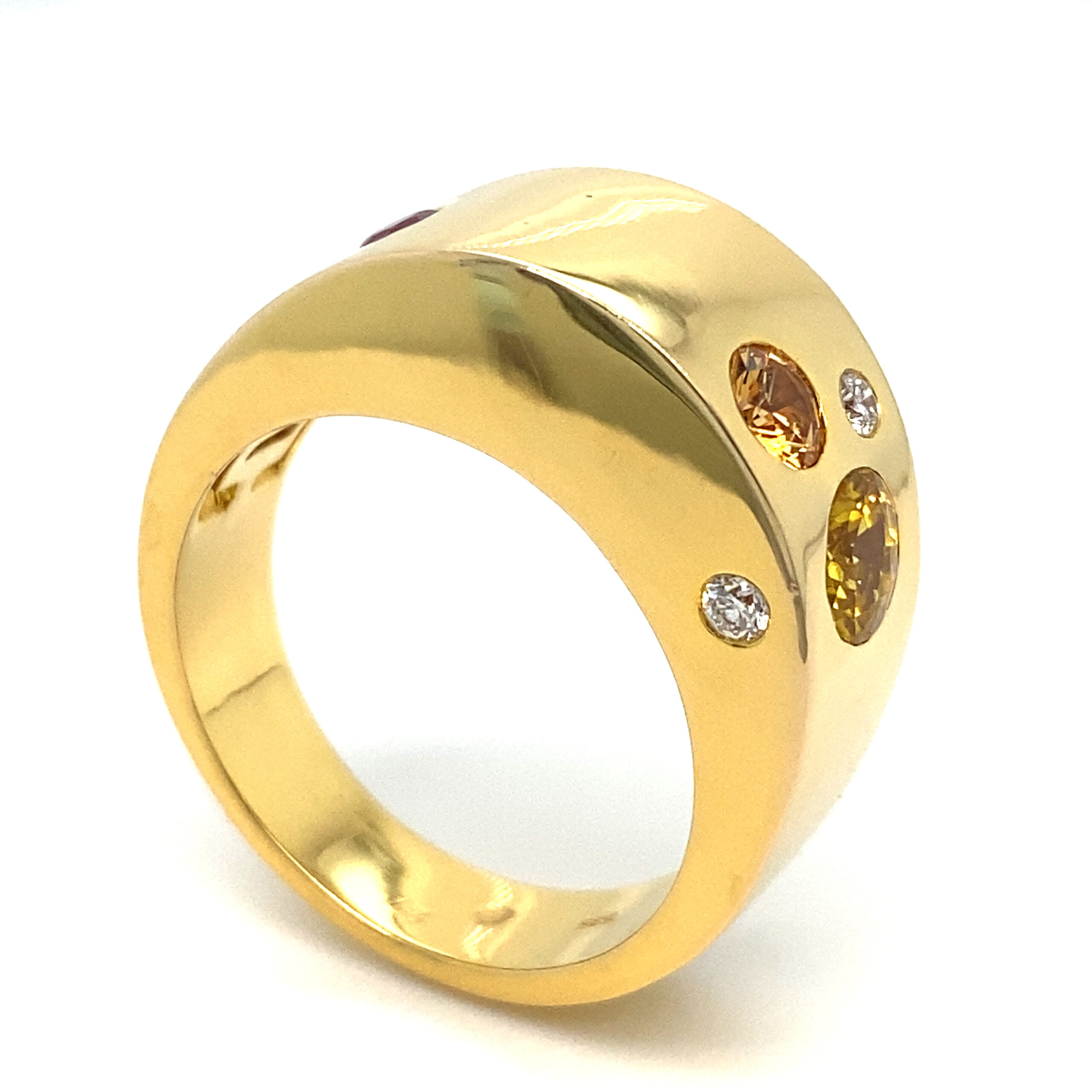 Inspirativan model prstena sa efektnim fensi safirima i brilijantima, koji se savršeno uklapaju i prave harmoniju sa žutom legurom zlata. Kraljevski rubin ističe pravu lepotu ovog modela koji je kreacija češke dizajnerke Daniele Komatović. Pred vama je komad sa kojim ćete uvek biti primećeni.