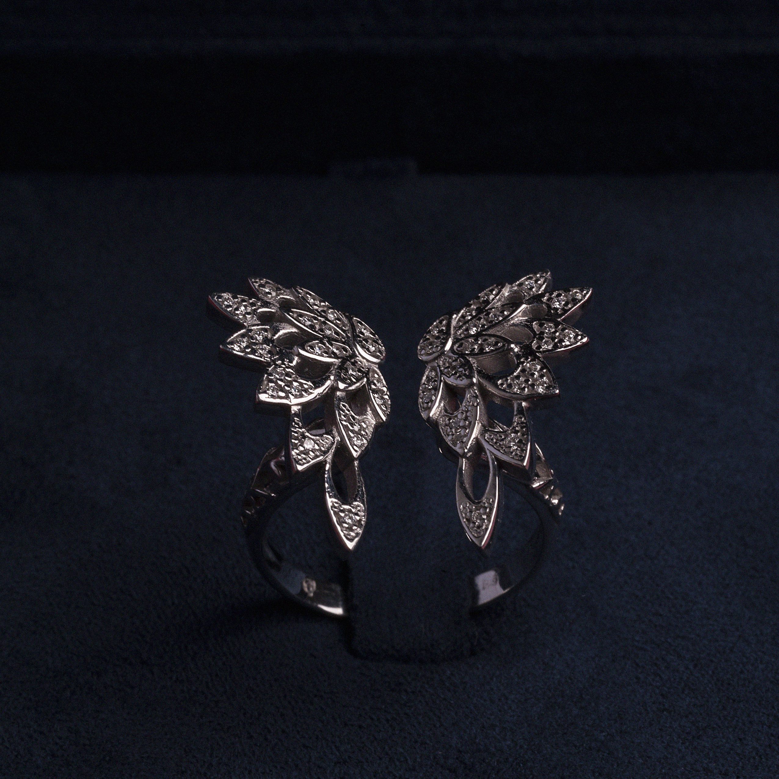 Raskošni prsten neobičnog dizajna, nagrađen na prestižnom međunarodnom sajmu nakita “ Sjaj“, ukrašen najfinijim brilijantima. Sa ovakvim komadom nakita nikada nećete proći neopaženo. Prsten sa motivom krila odražava sofisticiranu eleganciju i simboliku slobode. Izrađen od visokokvalitetnog belog zlata, ovaj prsten ističe se predivnim detaljima krila, stvarajući dinamičan i prefinjen izgled. Krila simbolizuju slobodu, inspiraciju i uzlet, dodajući duboko značenje svakom komadu. Njihov predivan dizajn u kombinaciji sa hladnim sjajem belog zlata čini prsten savršenim za one koji žele da istaknu svoju jedinstvenu stilsku estetiku i ličnost. Idealno je za specijalne prilike ili kao poseban znak lične inspiracije i snage.