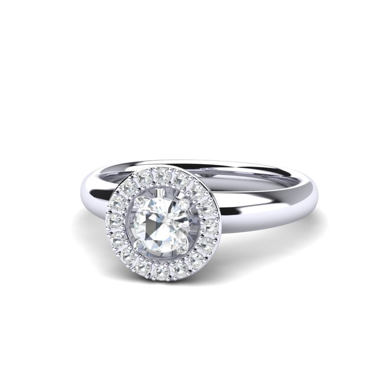 Prsten od zlata s elegantnim dizajnom, središnji deo ukrašen je velikim brilijantom koji dominira prstenom, okružen manjim brilijantima koji stvaraju prelepi efekat svetlosti i sjaja. Zlatna osnova prstena savršeno naglašava luksuznu lepotu dragog kamena, dok sitni brilijanti oko glavnog kamena dodaju dodatni šarm i sofisticiranost. Ovaj prsten je savršen izbor za posebne prilike, sa modernim, ali klasičnim izgledom koji nikad ne izlazi iz mode. Idealno za one koji žele da poseduju komad nakita koji je ujedno elegantan i očaravajuć.