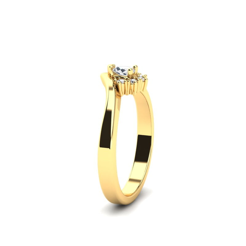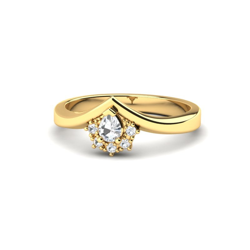 Prsten od zlata s dijamantom u obliku suze (pear), koji središnji deo prstena čini neodoljivim. Dijamant, sličan kapljičastoj formi, ima izuzetnu sposobnost da odražava svetlost i stvara besprekorno svetlucanje. Okružen je delikatnim nizom sitnih brilijanata koji dodatno naglašavaju njegovu lepotu, stvarajući nežan, ali prefinjen vizualni efekat. Zlatna osnova prstena savršeno se uklapa s blistavim dijamantom, što čini ovaj komad nakita elegantnim i sofisticiranim. Prsten je idealan izbor za posebne trenutke, dajući elegantan i luksuzan izgled svakom vlasniku.
