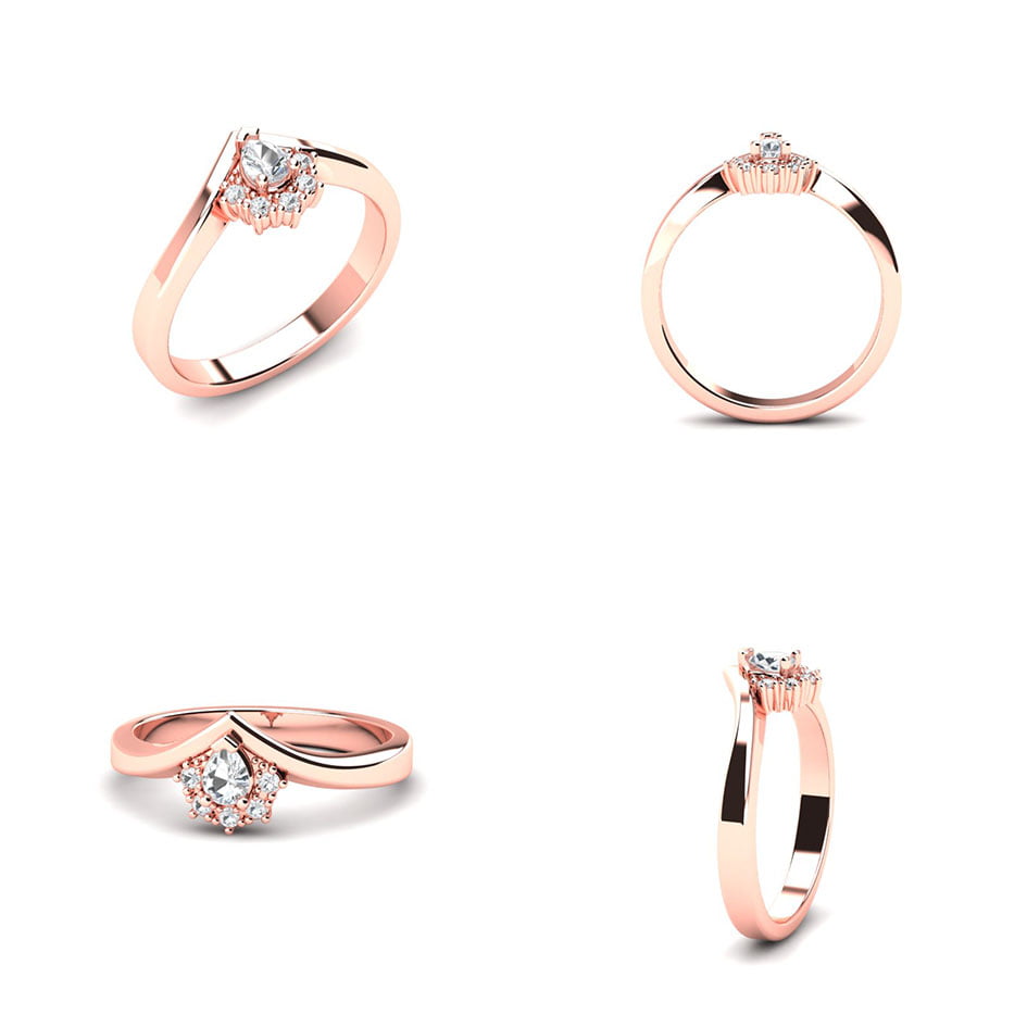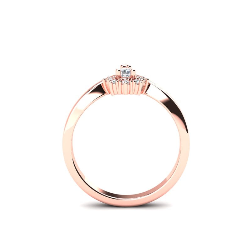 Prsten od zlata s dijamantom u obliku suze (pear), koji središnji deo prstena čini neodoljivim. Dijamant, sličan kapljičastoj formi, ima izuzetnu sposobnost da odražava svetlost i stvara besprekorno svetlucanje. Okružen je delikatnim nizom sitnih brilijanata koji dodatno naglašavaju njegovu lepotu, stvarajući nežan, ali prefinjen vizualni efekat. Zlatna osnova prstena savršeno se uklapa s blistavim dijamantom, što čini ovaj komad nakita elegantnim i sofisticiranim. Prsten je idealan izbor za posebne trenutke, dajući elegantan i luksuzan izgled svakom vlasniku.