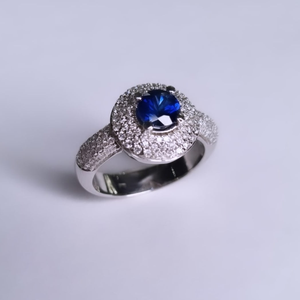 Verenički prsten, savršeno izbalansiran prirodnim sertifikovanim safirom i blistavim brilijantima vrhunske čistoće i kvaliteta, odaje počast našim najranijim pojmovima romantike. Elegantni prsten od belog zlata sa safirom odiše bezvremenskom lepotom i sofisticiranošću. U njegovom središtu blista prelepi safir, dragulj poznat po svojoj dubokoj plavoj boji i simbolici mudrosti, vernosti i plemenitosti. Prirodni brilijanti upotpunjuju sjaj ovog dragog kamena. Prefinjena izrada i sjaj belog zlata dodatno naglašavaju raskoš ovog prstena, stvarajući savršen sklad između luksuza i elegancije. Ovaj prsten je idealan izbor za posebne prilike, poklon s posebnim značenjem ili kao simbol večne ljubavi i posvećenosti.