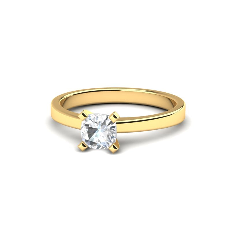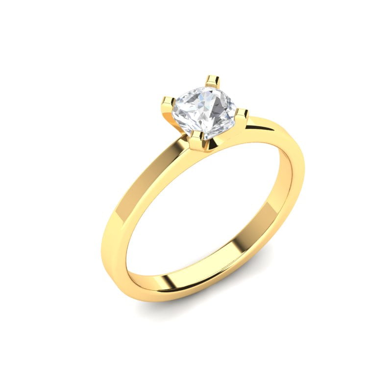 Cushion (jastučasti) dijamant, poznat po svojim zaobljenim ivicama i nežnim uglovima, savršeno kombinuje klasičnu i modernu estetiku. Njegova meka, kvadratna silueta sa suptilnim prelamanjem svetlosti stvara topao i romantičan sjaj. Postavljen na elegantnu šinu od žutog zlata, ovaj dijamant postaje pravi simbol ljubavi i trajne vrednosti.