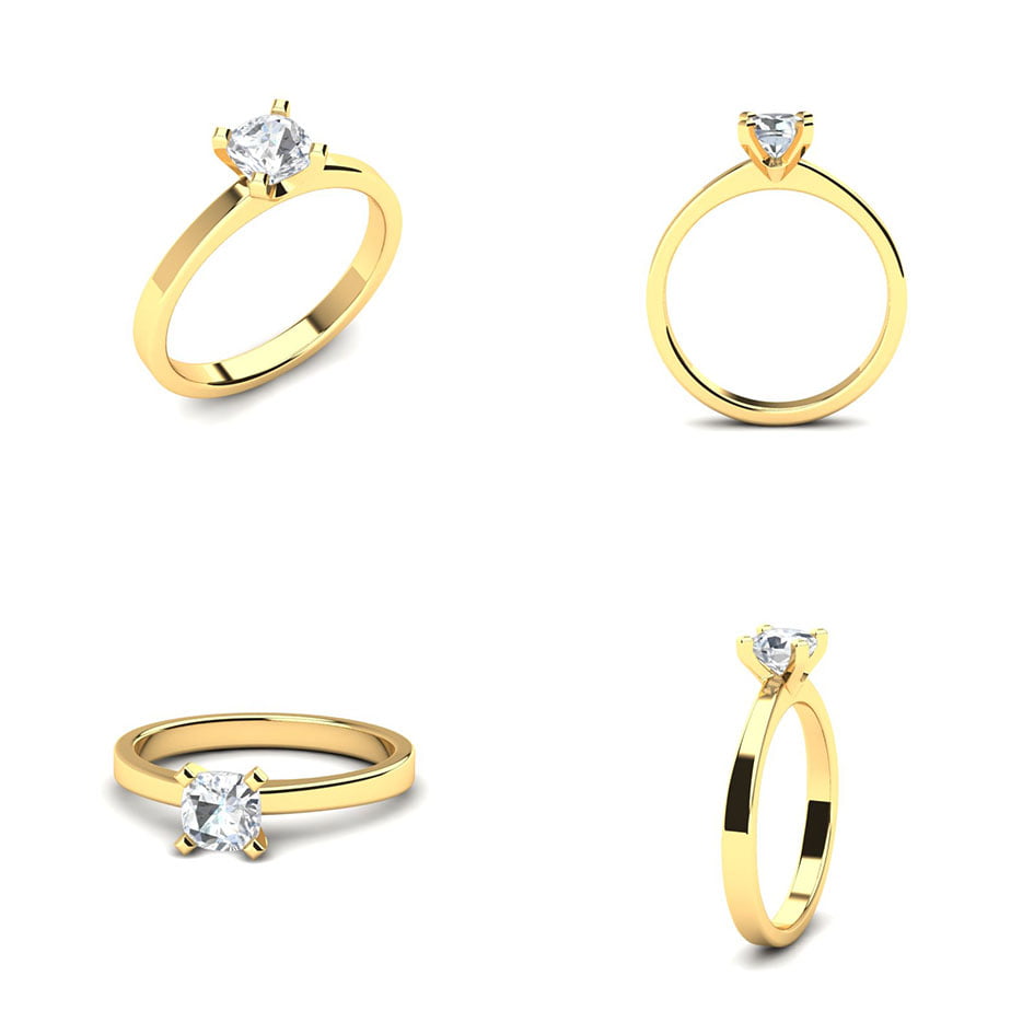 Prsten ima četiri klasične krapne koje nežno drže dijamant, omogućavajući mu da maksimalno reflektuje svetlost. Ovaj dizajn je savršen za one koji cene jednostavnost i eleganciju, pružajući sofisticiran, ali nenametljiv luksuz koji nikada ne izlazi iz mode.