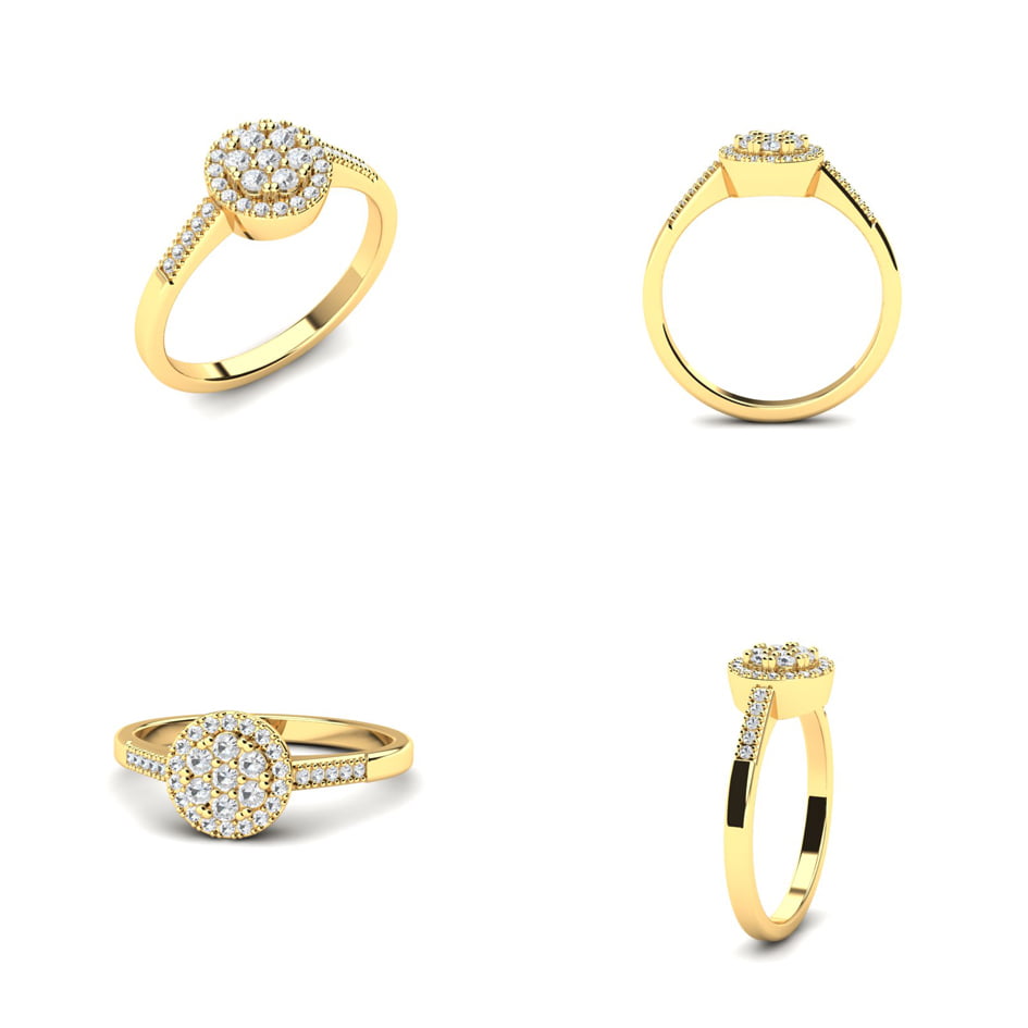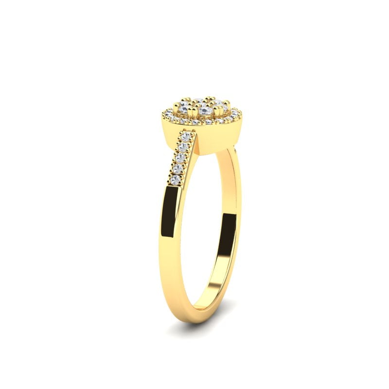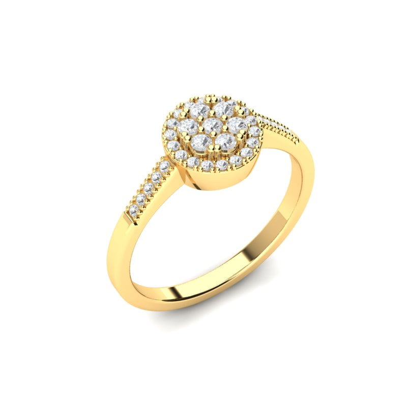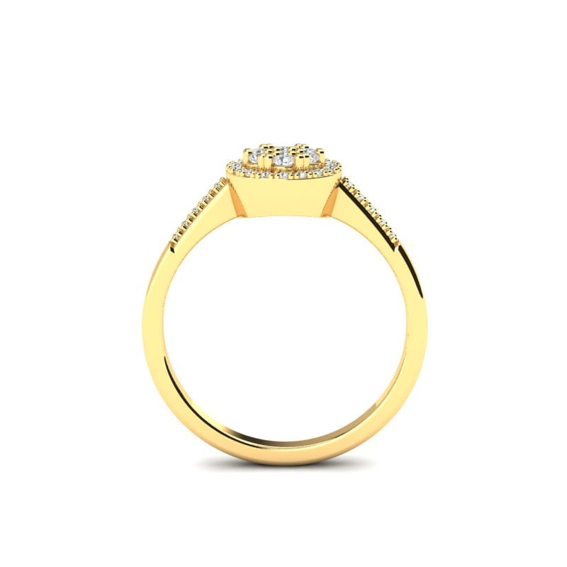 Prsten od žutog zlata, bogato ukrašen nizom blistavih dijamanata koji fantastično prelamaju svetlost pri svakom pokretu. Idealan za svakodnevno nošenje ili kao elegantan dodatak specijalnim prilikama. Ovaj prsten je savršen za one koji cene lepotu u jednostavnosti i žele da izraze svoju delikatnu, ali bezvremensku estetiku.