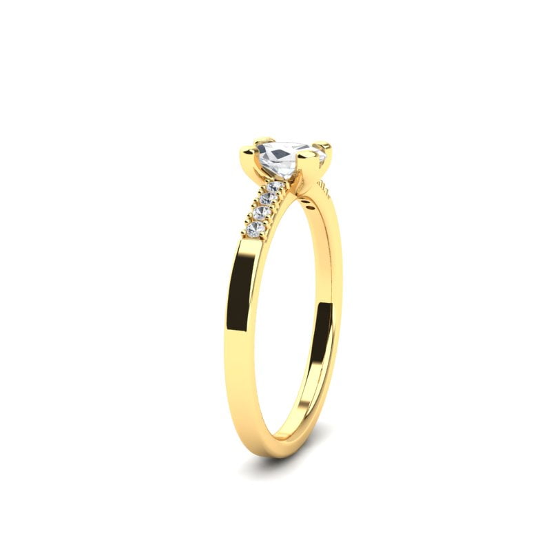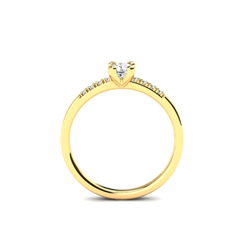 Duž šine se proteže niz sitnih round brilijanata, pažljivo postavljenih tako da dodatno naglase centralni kamen. Ovi dijamanti, stvaraju prelepi svetlucavi efekat, čineći da prsten blista iz svakog ugla.