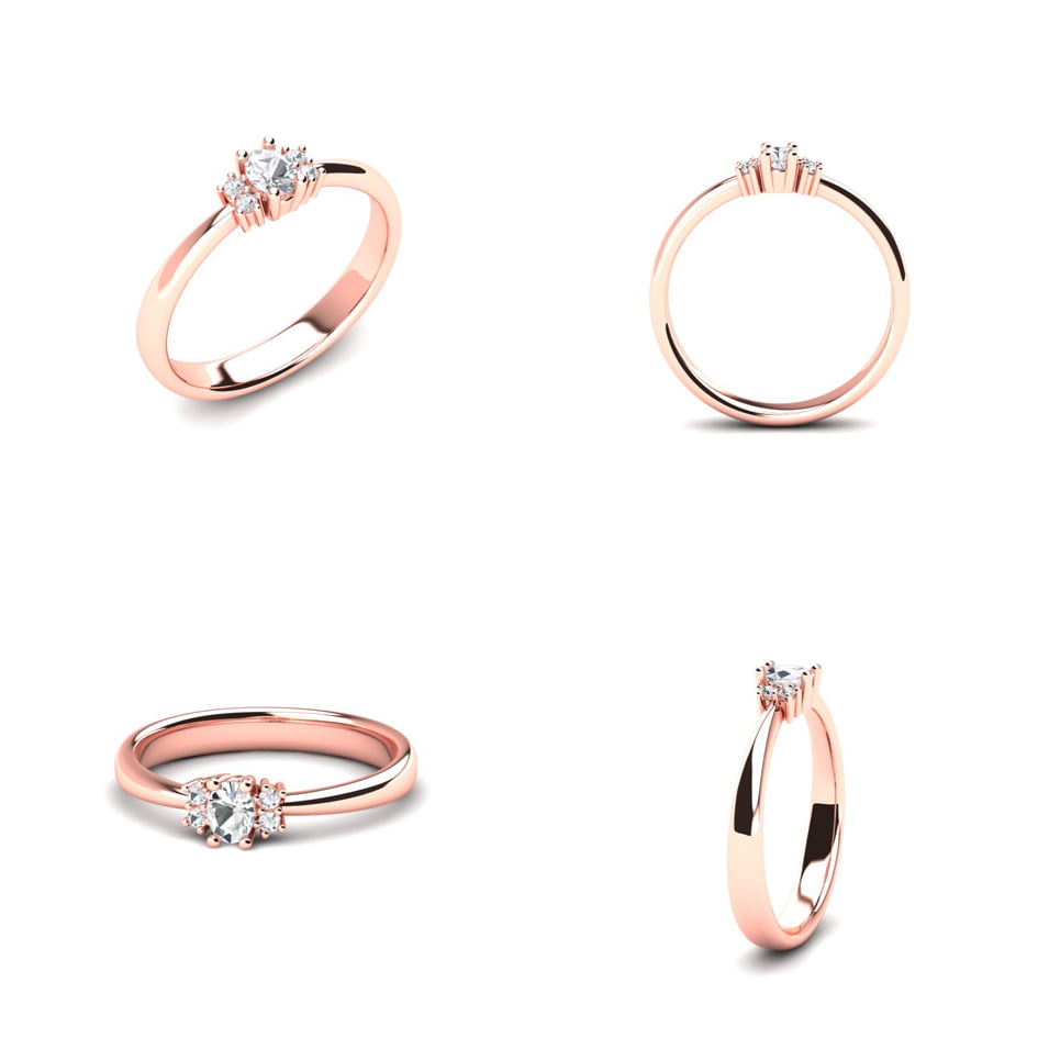 Sa obe strane centralnog dijamanta nalaze se manji round brilijanti, diskretno postavljeni kako bi dodatno naglasili sjaj i raskoš celokupnog dizajna.