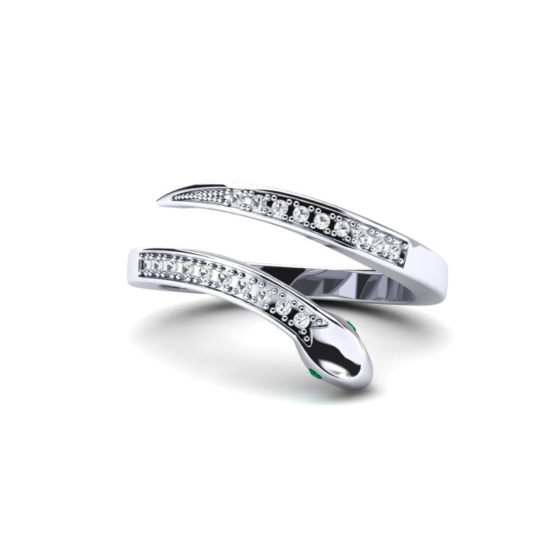 Zapanjujući zlatni prsten sa motivom zmije donosi neodoljiv spoj umetničkog dizajna i luksuznih materijala. Prsten je oblikovan u fantastičnu siluetu zmije, sa detaljno izrađenim telom koje se savija oko prsta u elegantnu spiralu. Svaka zakrivljenost je pažljivo oblikovana kako bi prikazali prirodni izgled i pokretljivost zmije. Oči zmije su izrađene od prirodnih smaragda, koji donose intenzivnu zelenu boju i izuzetnu dubinu u dizajn. Motiv zmije simbolizuje mudrost i transformaciju, dok prirodni smaragdi i dijamanti dodaju dašak sofisticiranosti i luksuza. Ovaj prsten je savršen za one koji žele da iskažu svoju individualnost i stil sa posebnim komadom nakita.