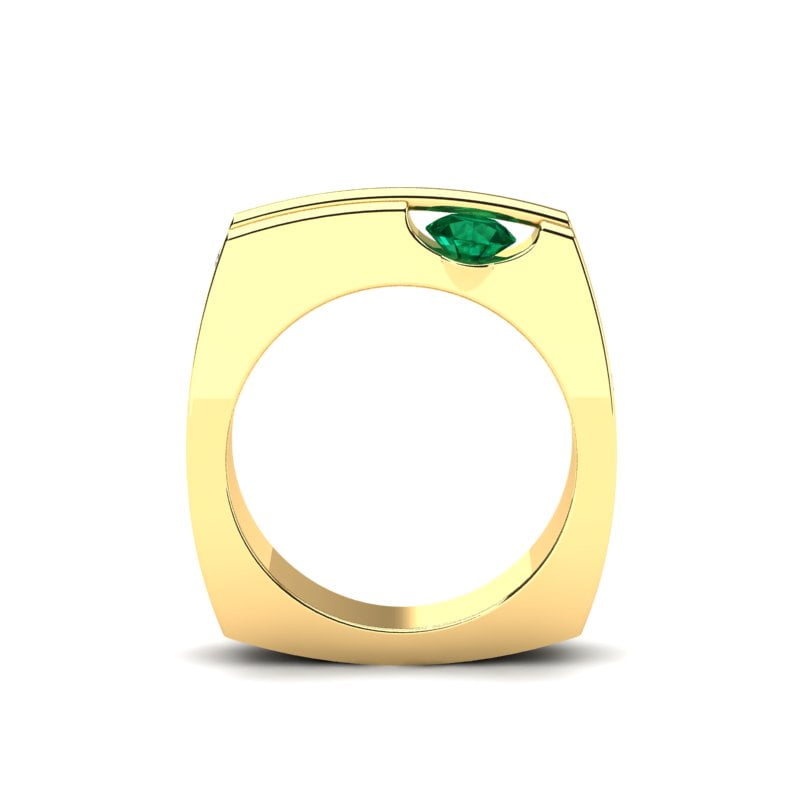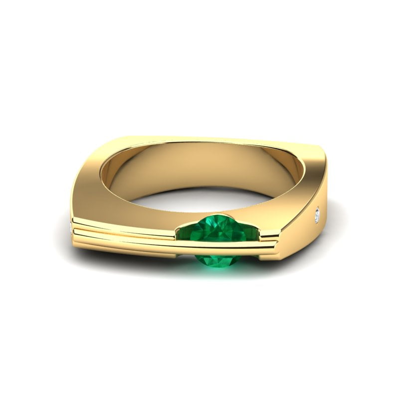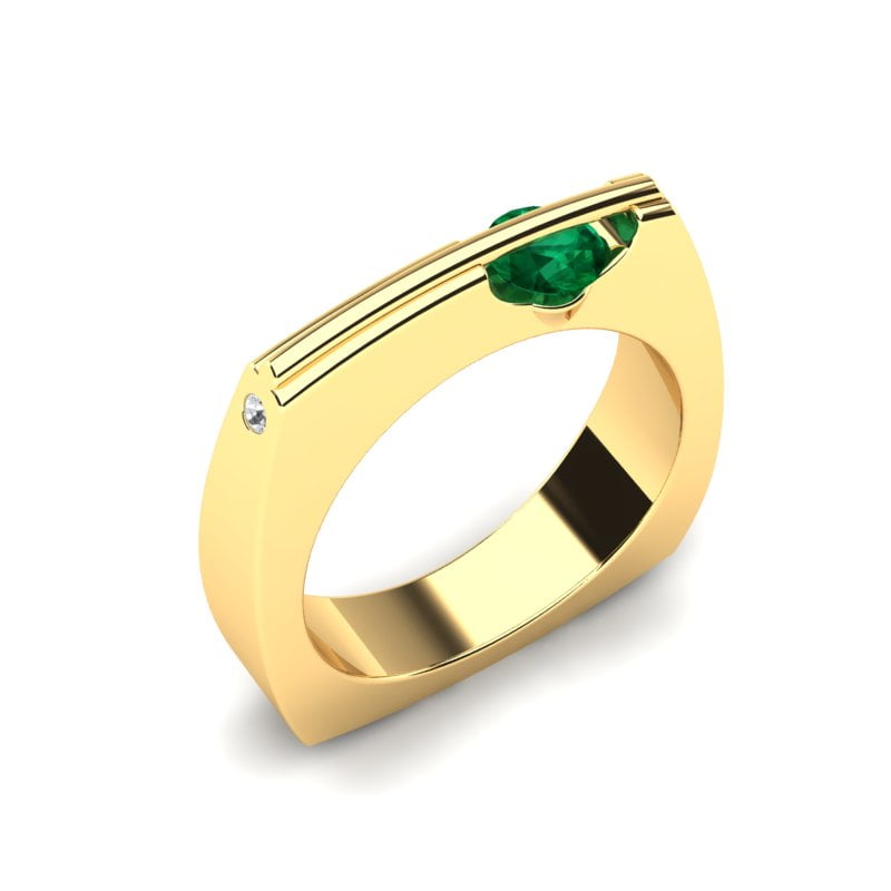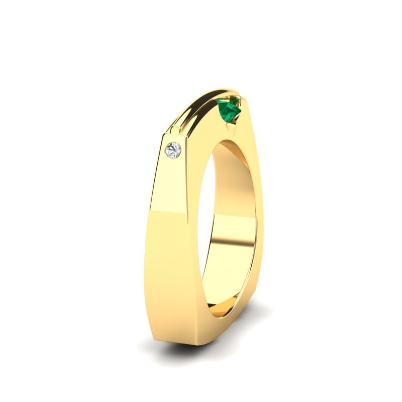 Atraktivan model prstena neobičnog dizajna, upečatljivog oblika i vrhunske kombinacije žutog zlata i prirodnog smaragda koji se rotira. Krase ga i dva nežna dijamanta dajući mu notu otmenosti i luksuza. Ovaj prsten donosi prefinjenost i luksuz u svaki detalj.