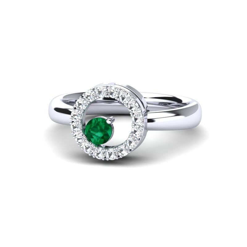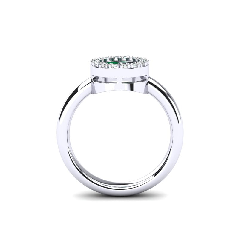 Pažljivo postavljen smaragd maksimalno ističe svoju prirodnu lepotu i intenzitet boje, dok dijamanti nežno hvataju svetlost, stvarajući očaravajući sjaj koji pleni pogled iz svakog ugla. Polirana površina belog zlata dodatno naglašava luksuzni karakter prstena, čineći ga komadom nakita koji odiše sofisticiranošću i prefinjenošću. Njegov klasičan, ali izuzetno elegantan dizajn omogućava da prsten bude savršen izbor za svečane prilike. Ovaj prsten je više od nakita, on je izraz prestiža, bezvremenske lepote i sofisticiranog ukusa, idealan za dame koje žele da ostave snažan i elegantan utisak.