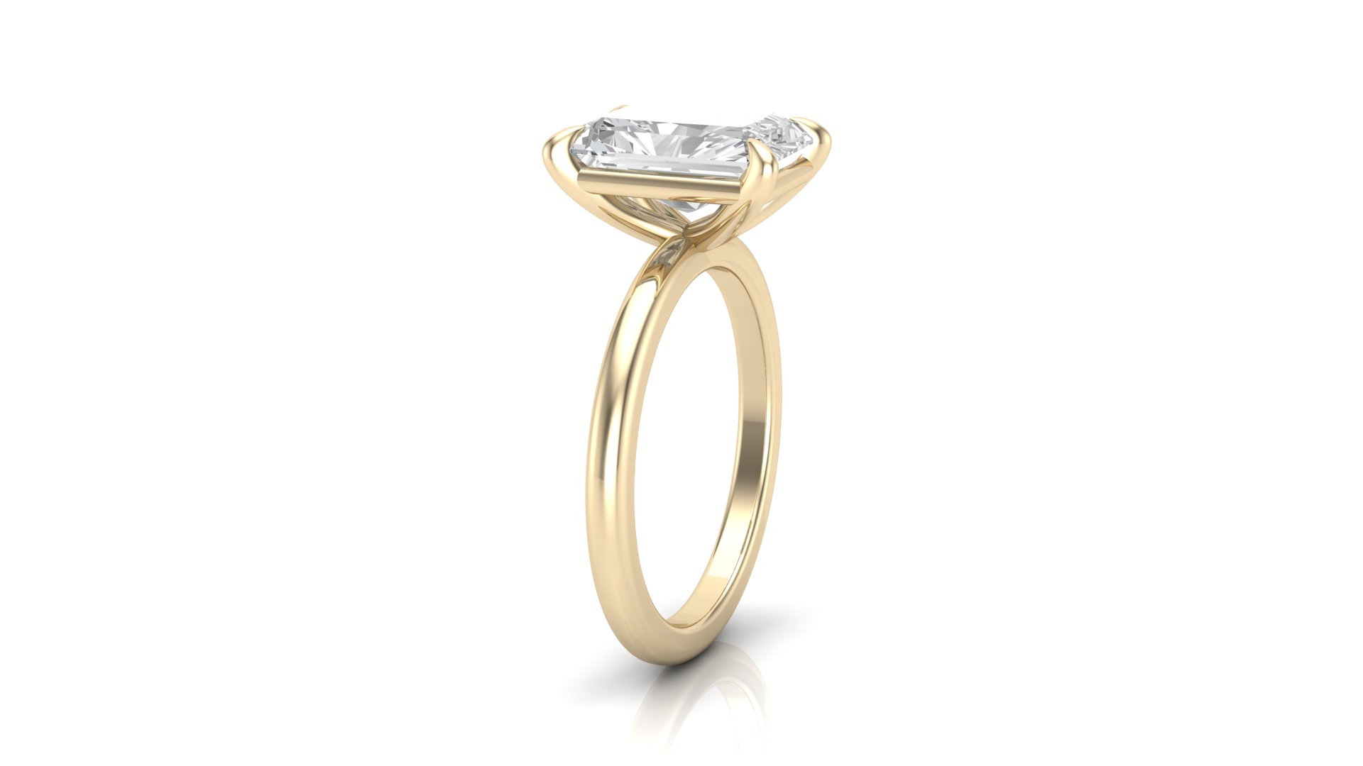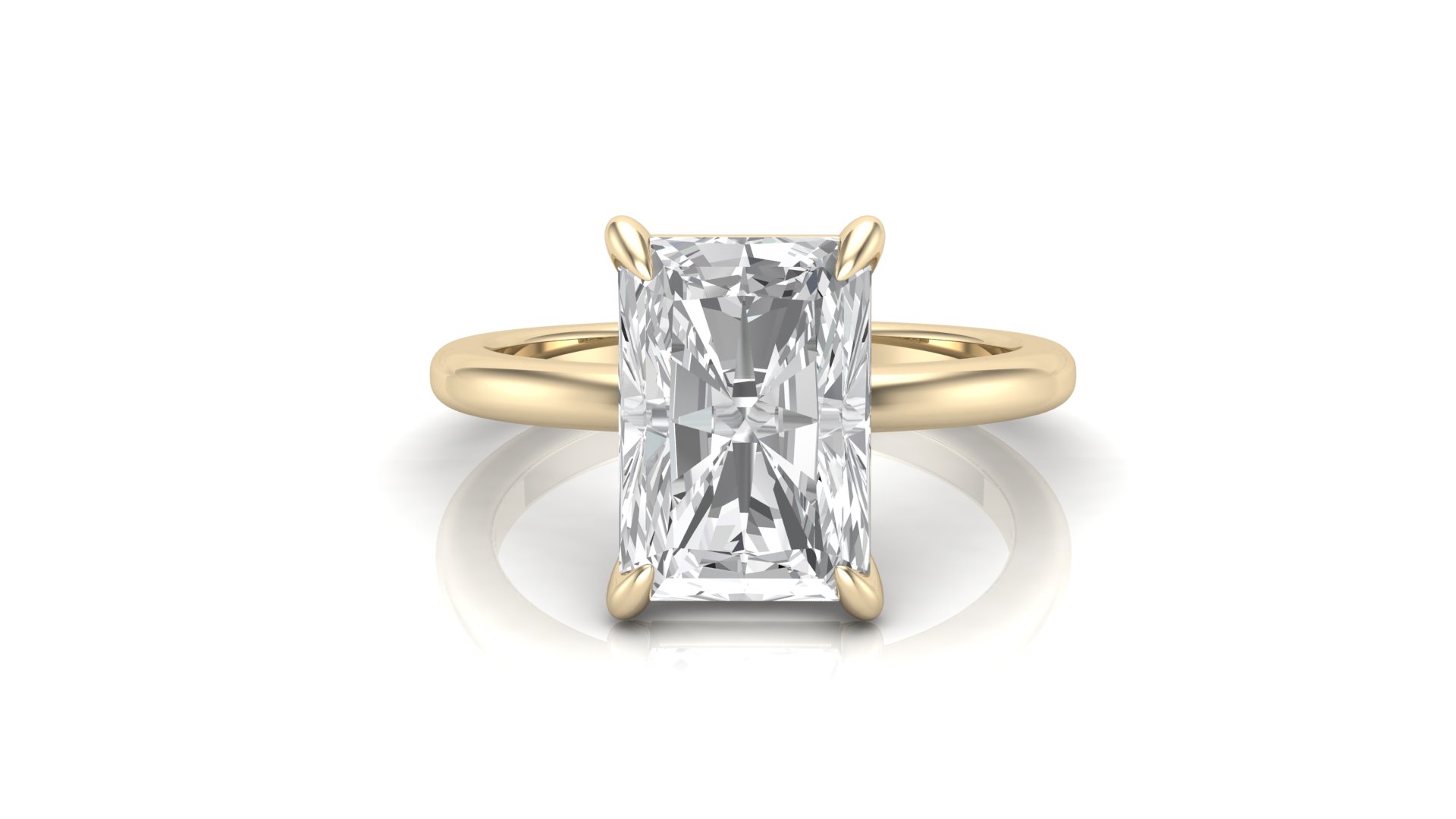Ovaj prsten nastaje iz ideje svetlosti koja oblikuje identitet i ostavlja trag. Radiant brušeni dijamant otvara prostor za hrabru, modernu eleganciju i jasno definisan stil. Njegove precizne linije stvaraju geometrijski ritam čiste estetike, dok svaki ugao kamena naglašava snagu, samopouzdanje i unutrašnju stabilnost dame koja ga nosi.
