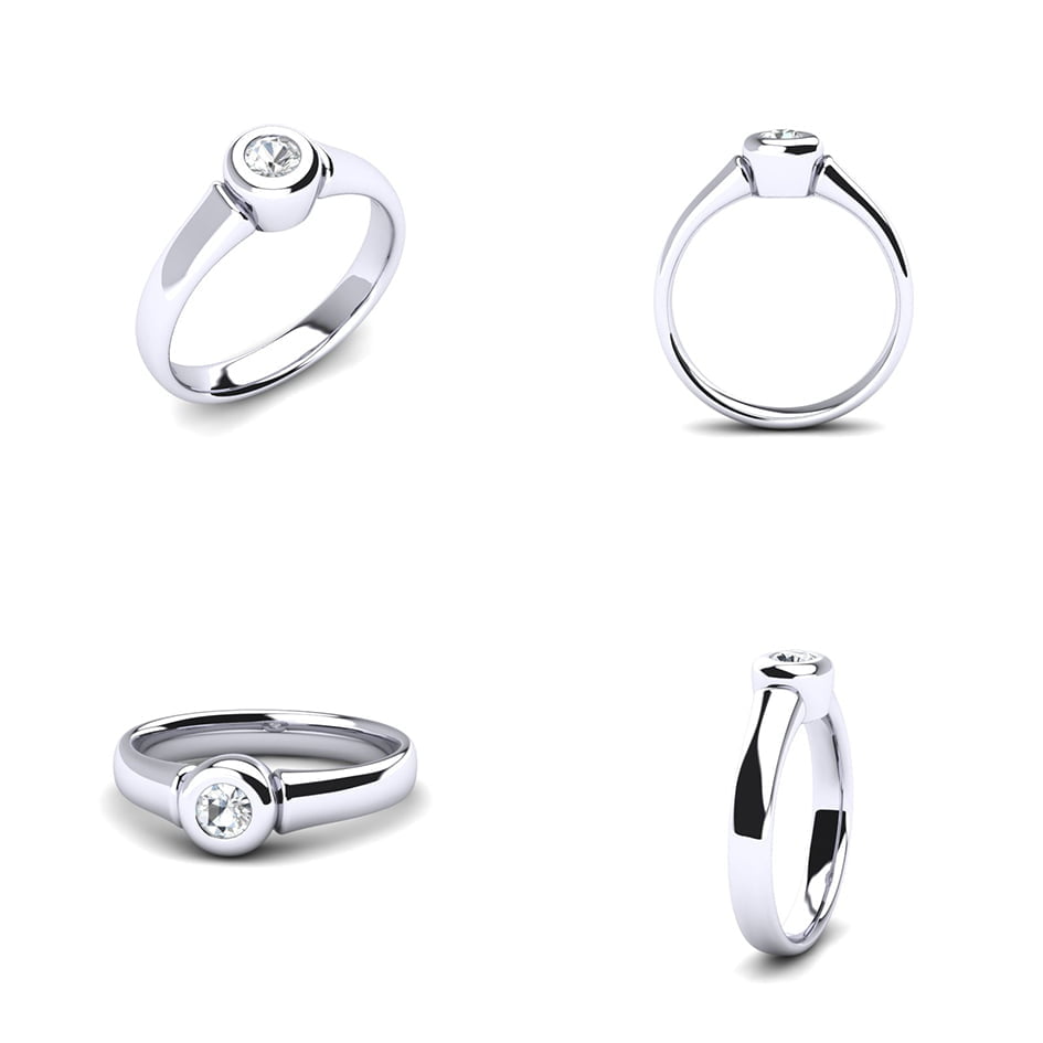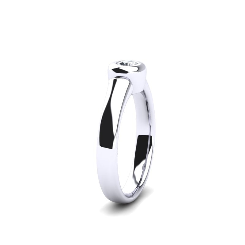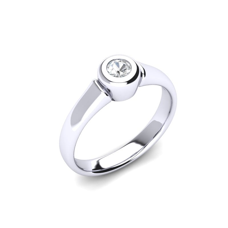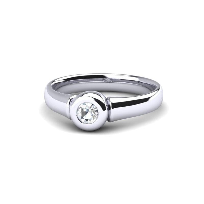 Ovaj prelepi verenički prsten od belog zlata predstavlja savršenu kombinaciju elegancije i savremenog dizajna. U središtu prstena blista okrugli dijamant, pažljivo umetnut u okruglu krapnu koja se odlikuje čistim, glatkim linijama. Fino zaobljene ivice prstena dodaju dozu delikatnosti i udobnosti, omogućavajući da prsten savršeno prianja uz vašu ruku.
