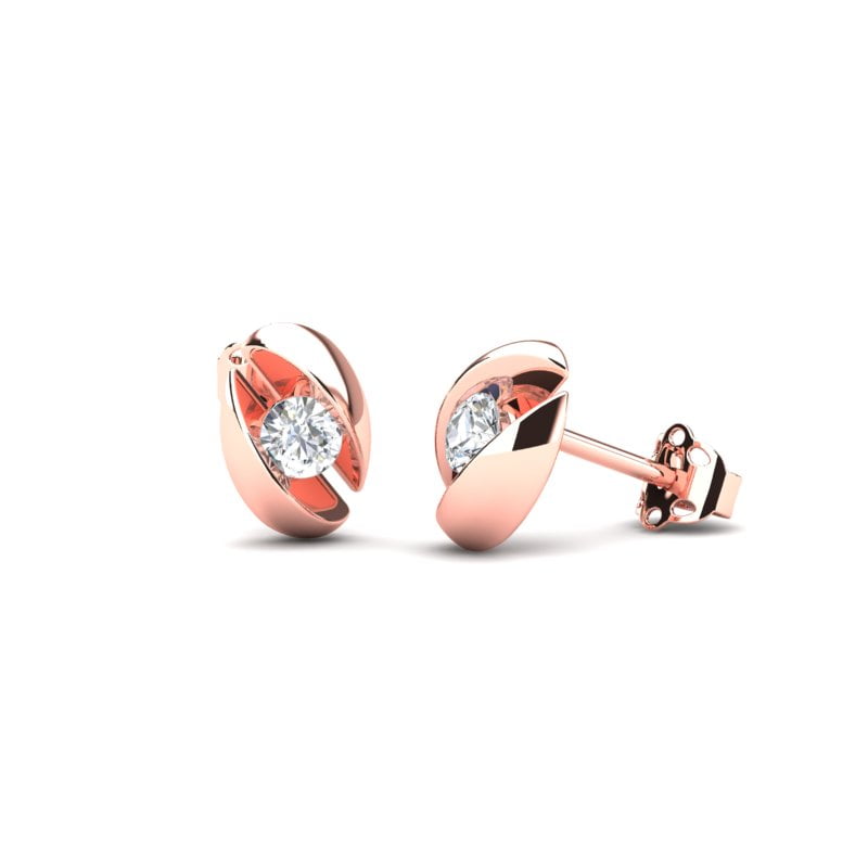 Specchio – ubodne minđuše izrađene od roze, livenog 14-karatnog zlata, sa ručno ufasovanim prirodnim brillijantom. Visoki sjaj uglačanih zlatnih površina, dodatno pojačava brilijantski odsjaj, čineći ovaj par jednim od onih po kojima će vas pamtiti!