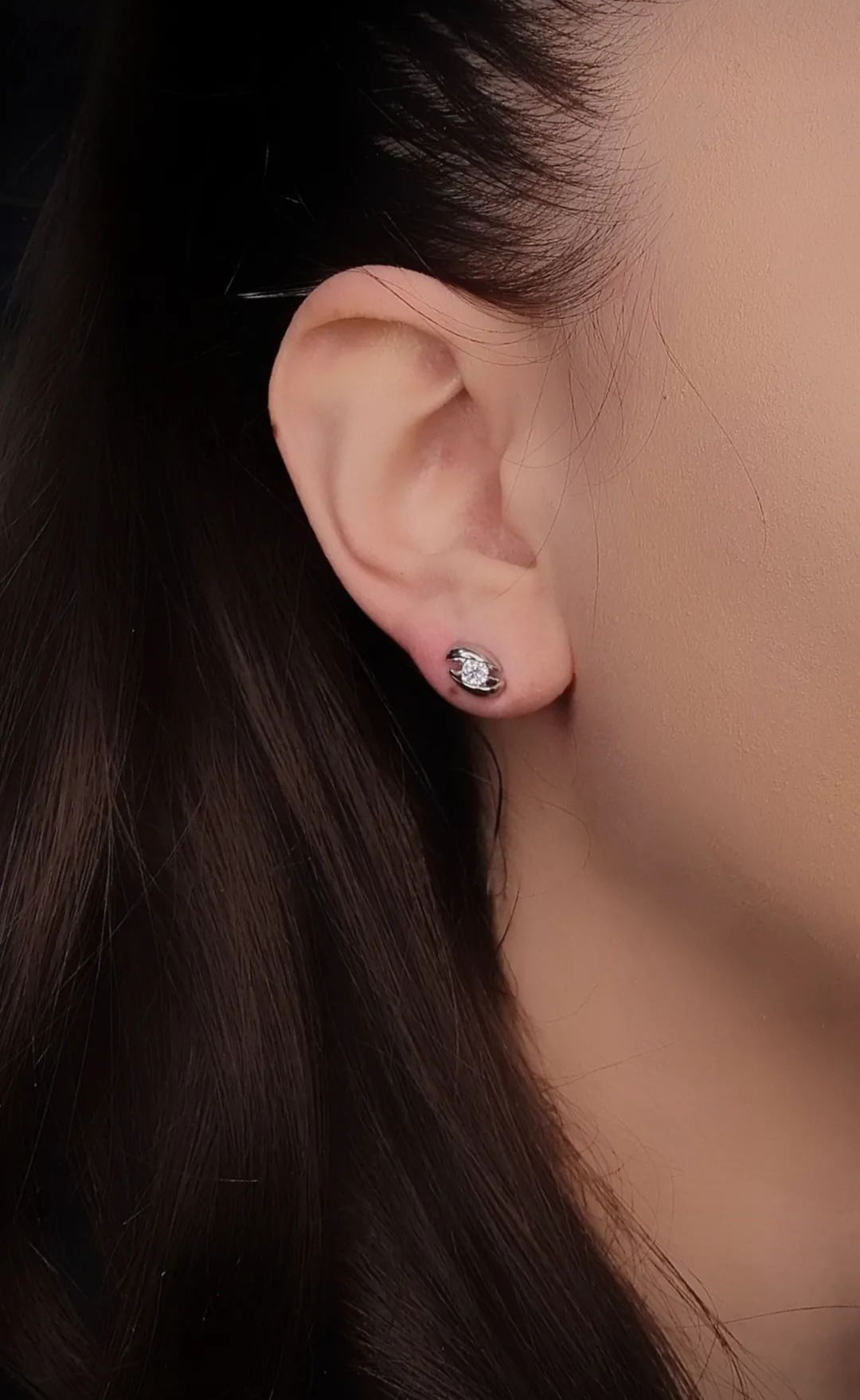 Specchio – ubodne minđuše izrađene od belog, livenog 14-karatnog zlata, sa ručno ufasovanim prirodnim brillijantom. Visoki sjaj uglačanih zlatnih površina, dodatno pojačava brilijantski odsjaj, čineći ovaj par jednim od onih po kojima će vas pamtiti!