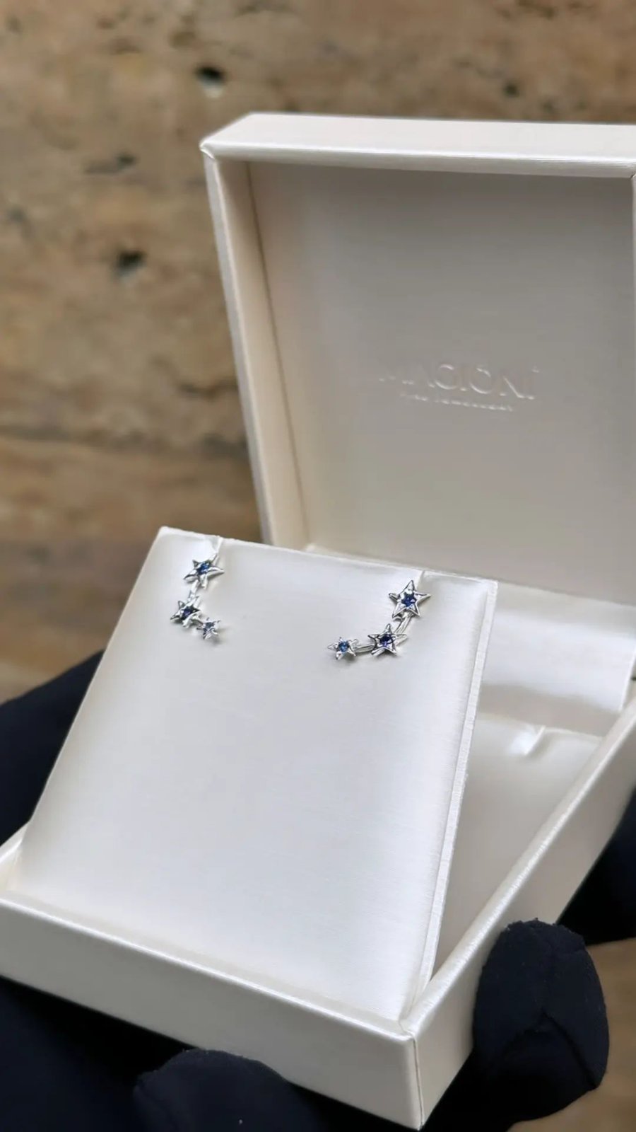Tre stelle minđuše, model koji se može nositi na više načina, diskretan a tako efektan. Centralni element ovih minđuša su tri zvezde koje diskretno svetlucaju zahvaljujući prirodnim safirima. Zvezde simbolizuju različita značenja poput sreće, snova ili posebnih trenutaka, što ovim minđušama dodaje sentiment i dublji smisao.