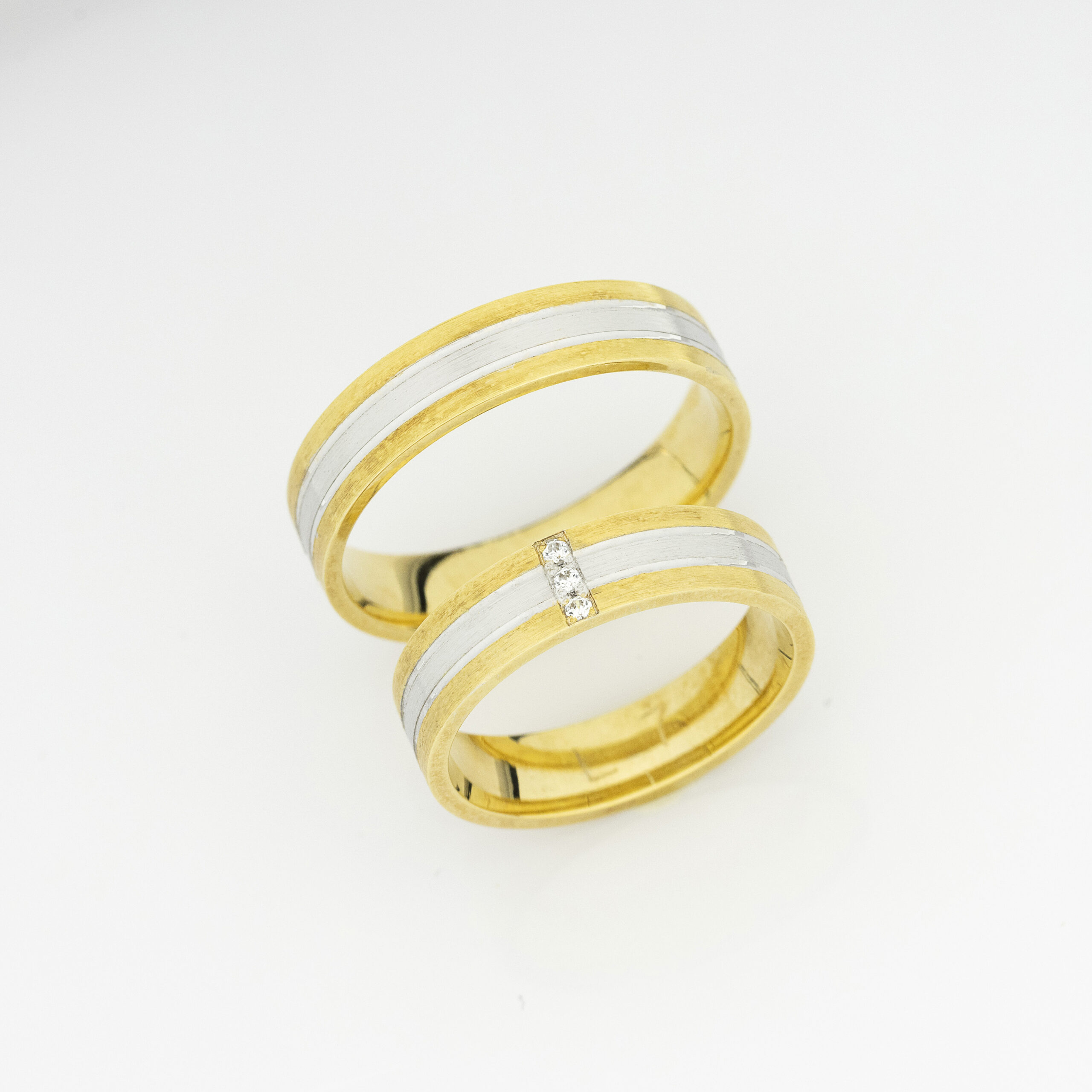 Ove burme spajaju sofisticiranost i modernu eleganciju. Izrađene od nežnog žutog zlata sa belim matiranim središnjim delom koji stvara suptilan kontrast. Tri blistava dijamanta dodaju prefinjen sjaj i luksuz, stvarajući savršen balans između moderne estetike i klasične lepote.