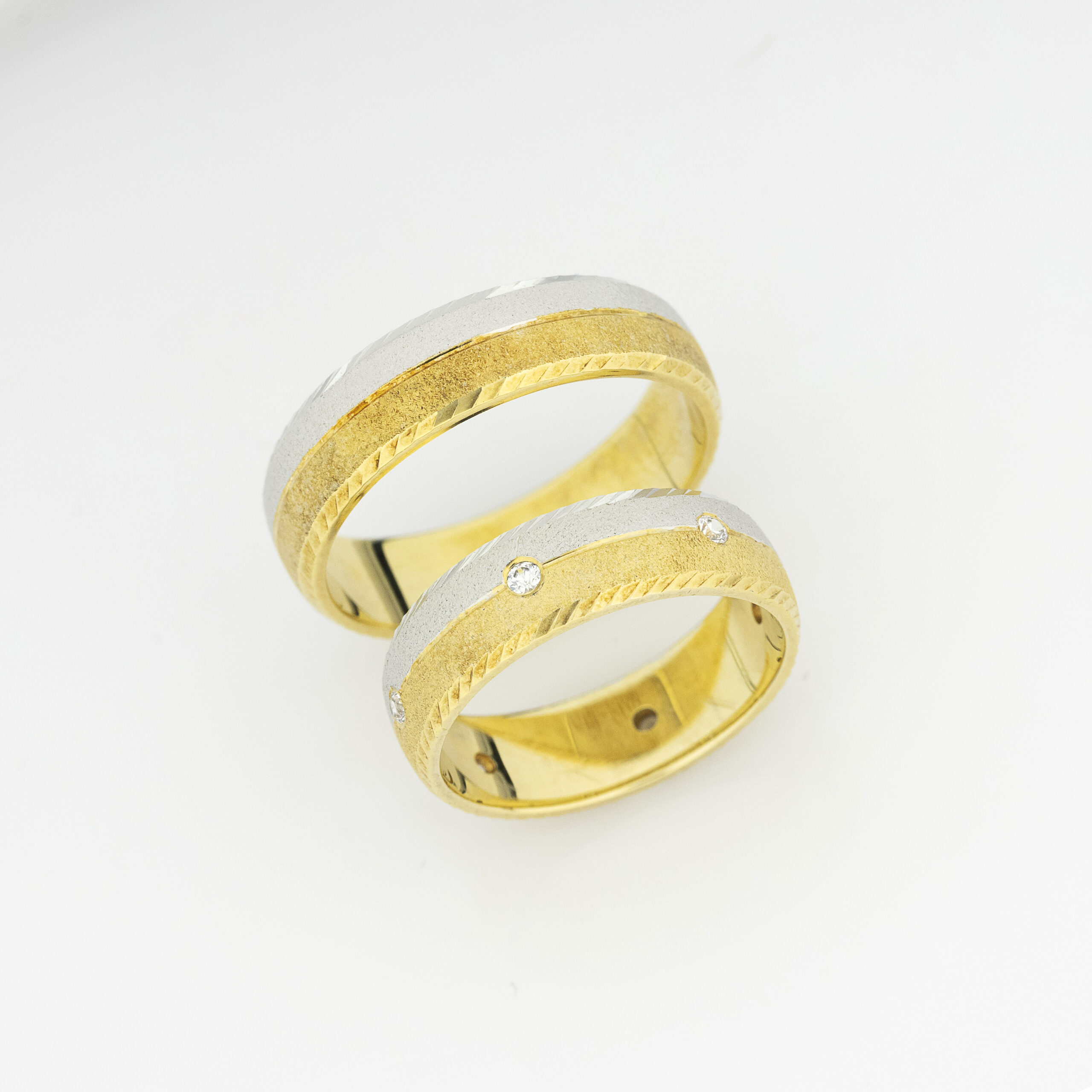 Ove venčane burme spajaju belo i žuto zlato u besprekornom dizajnu. Kombinacija dva plemenita metala stvara harmoniju boja. Dijamanti dodaju dašak luksuza i svetlosti, čineći ove burme idealnim simbolom večne ljubavi.