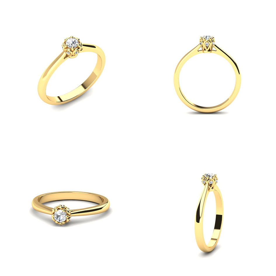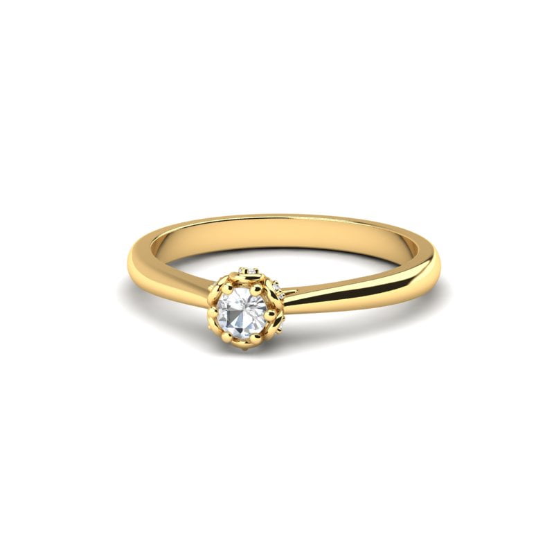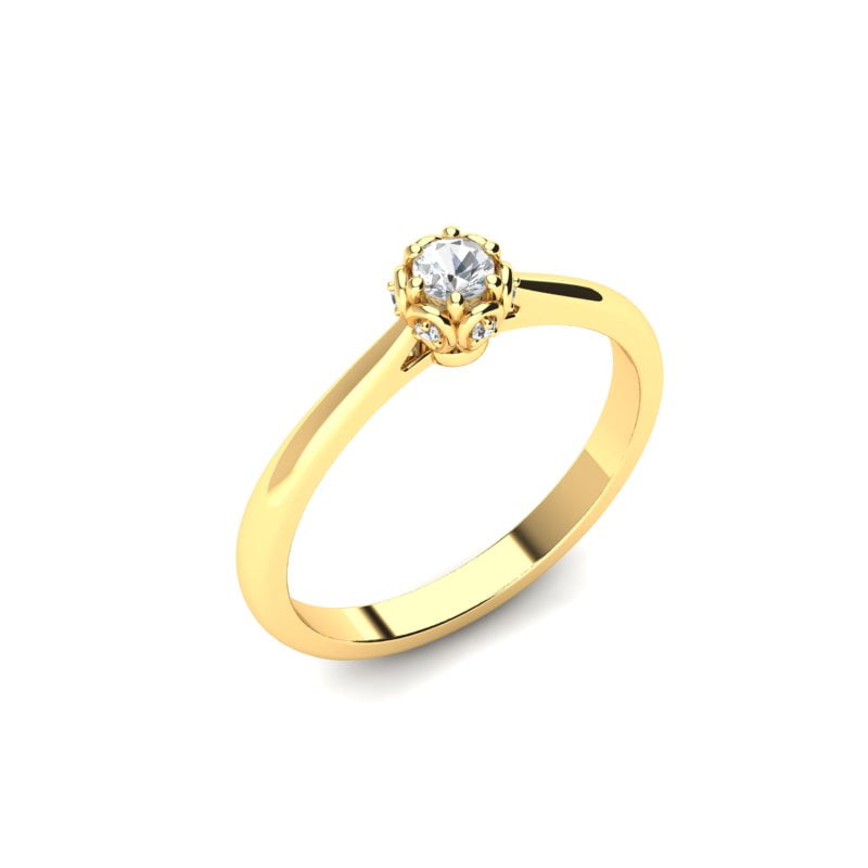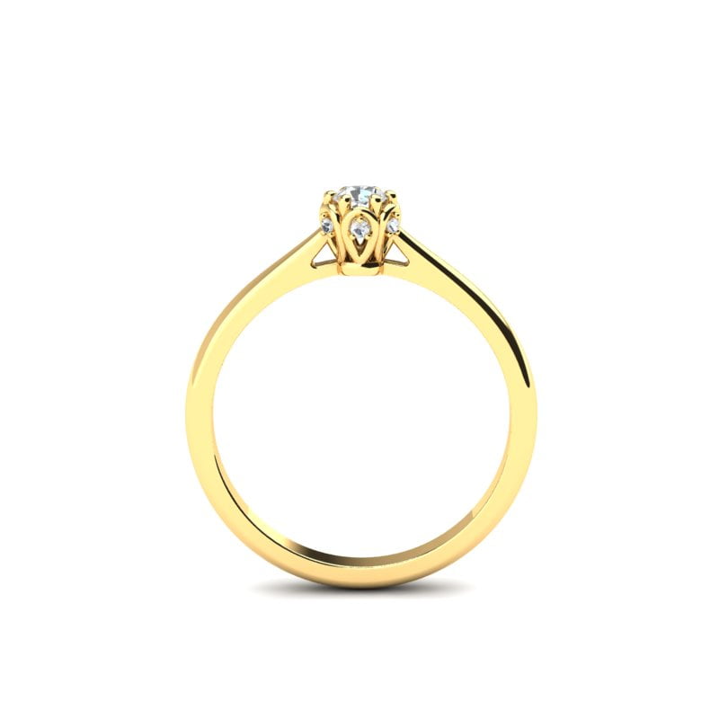 Raskošan prsten od žutog zlata sa prelepim dijamantom u centru, čija lepota simbolizuje strast i večnu ljubav. Ovaj dragoceni kamen okružen je blistavim brilijantima koji nežno naglašavaju njegov prelepi sjaj.