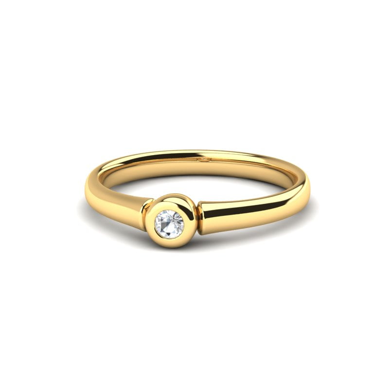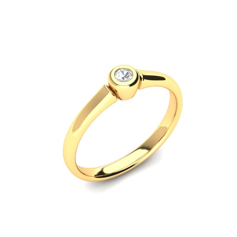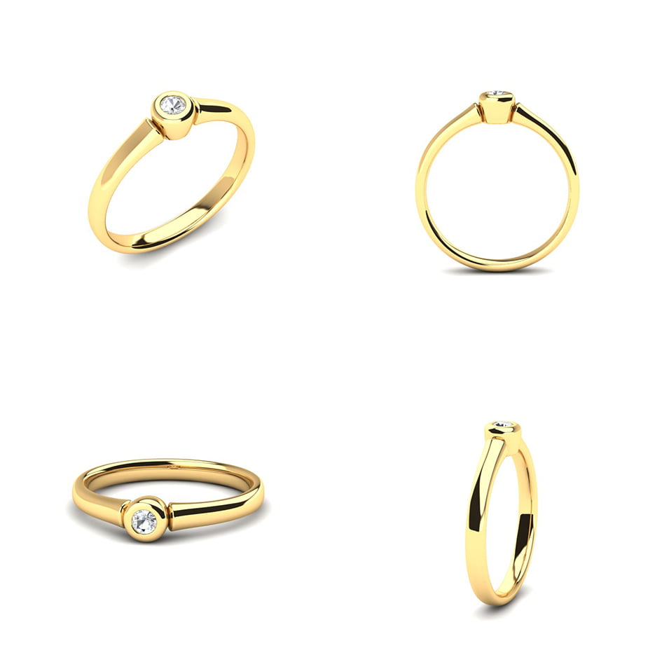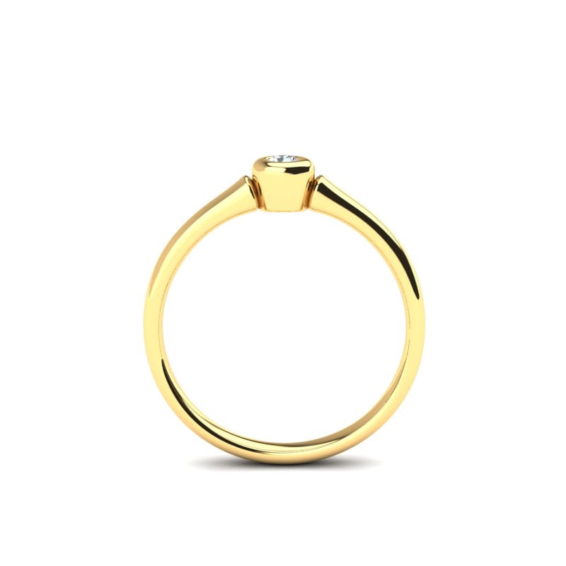 Dizajn prstena je jednostavan, ali izuzetno efektan, omogućavajući dijamantu da bude u centru pažnje. Širina šine je savršeno prilagođena, dajući prstenu elegantan i udoban izgled. Njegova površina je blago polirana, što dodatno pojačava zlatni sjaj.
