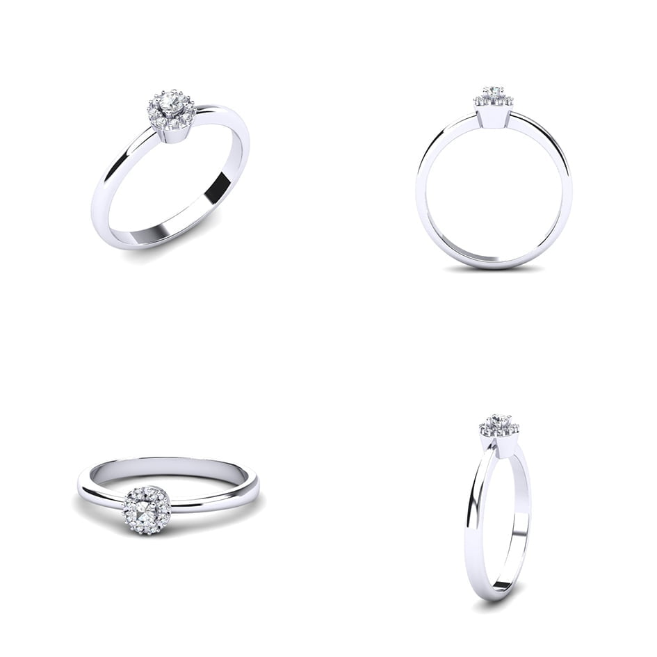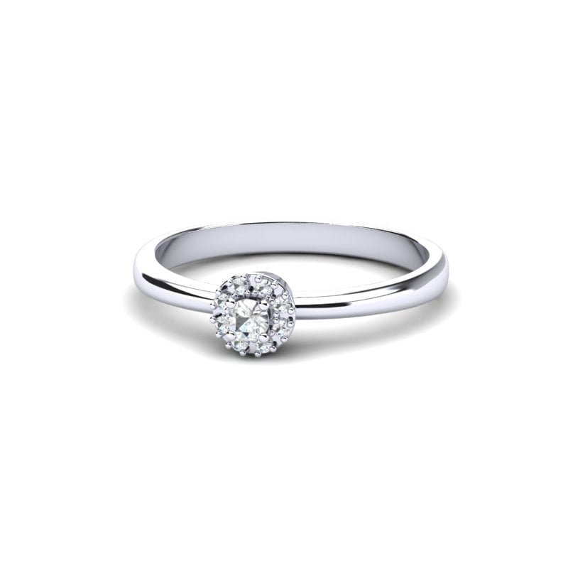 U samom srcu prstena nalazi se centralni dijamant, pažljivo brušen kako bi postigao maksimalan sjaj. Oko njega se prostire halo brilijanata, koji dodatno naglašavaju njegovu svetlucavost i vizuelno povećavaju njegovu veličinu.
