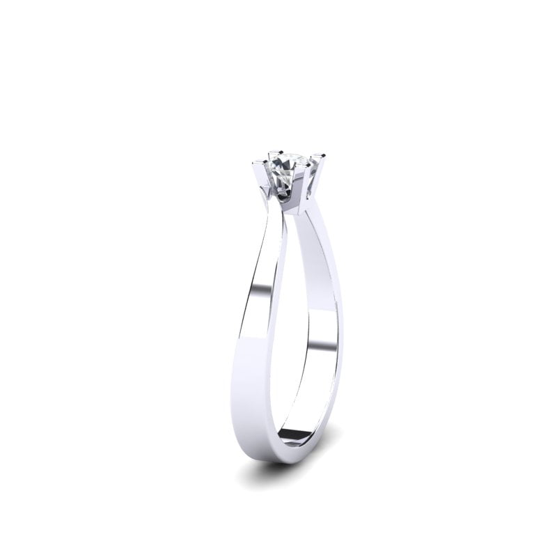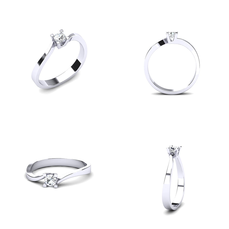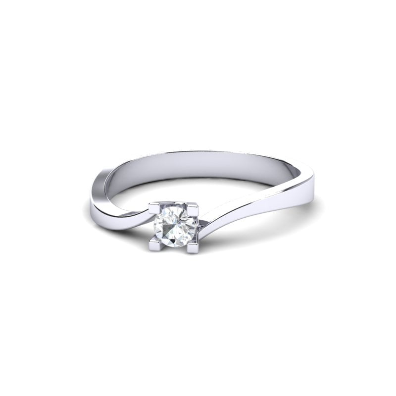 Blaga uvijenost šina nežno vodi pogled ka centralnom kamenu, stvarajući osećaj dinamike i simboliku večne povezanosti. Belo zlato svojim sjajem dodatno naglašava čistoću dijamanta. Moderan dizajn prstena čini da se savršeno uklopi uz svaki stil.