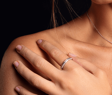 Verenički prsten od belog zlata sa dijamantom kombinuje sofisticiranost i elegantnu geometriju, stvarajući besprekoran simbol večne ljubavi.