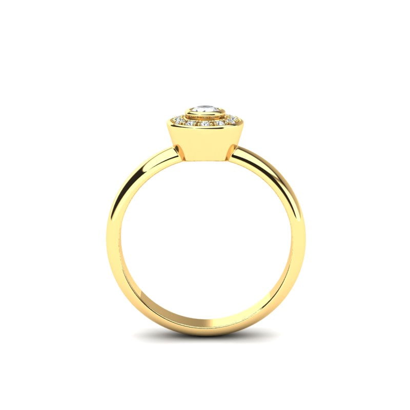 Žuto zlato, ispolirano do savršenstva, daje prstenu moderan i čist izgled, a ujedno pruža idealnu pozadinu koja ističe svetlucanje dijamanata.