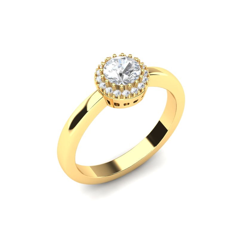 Prsten je izrađen od finog žutog zlata koje pruža topli, otmen sjaj. Dijamanti stvaraju impresivan vizuelni efekat i odražavaju svetlost iz svakog ugla, dodajući prstenu beskrajnu lepotu i glamur.