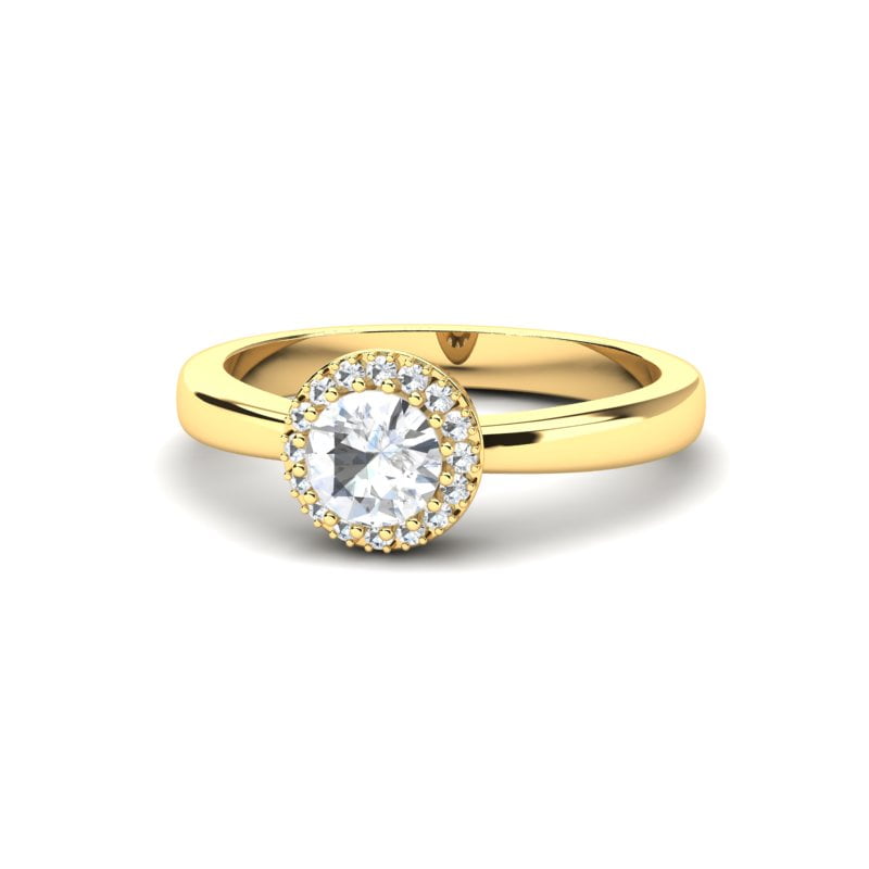 Prefinjeni prsten od žutog zlata, sjajan i elegantan. Žuto zlato mu daje sofisticiranu notu, dok dijamanti dodaju sjaj i luksuz. Izuzetno elegantan izbor za svečane prilike ili simbol posebnog trenutka u životu.