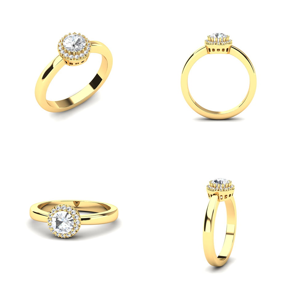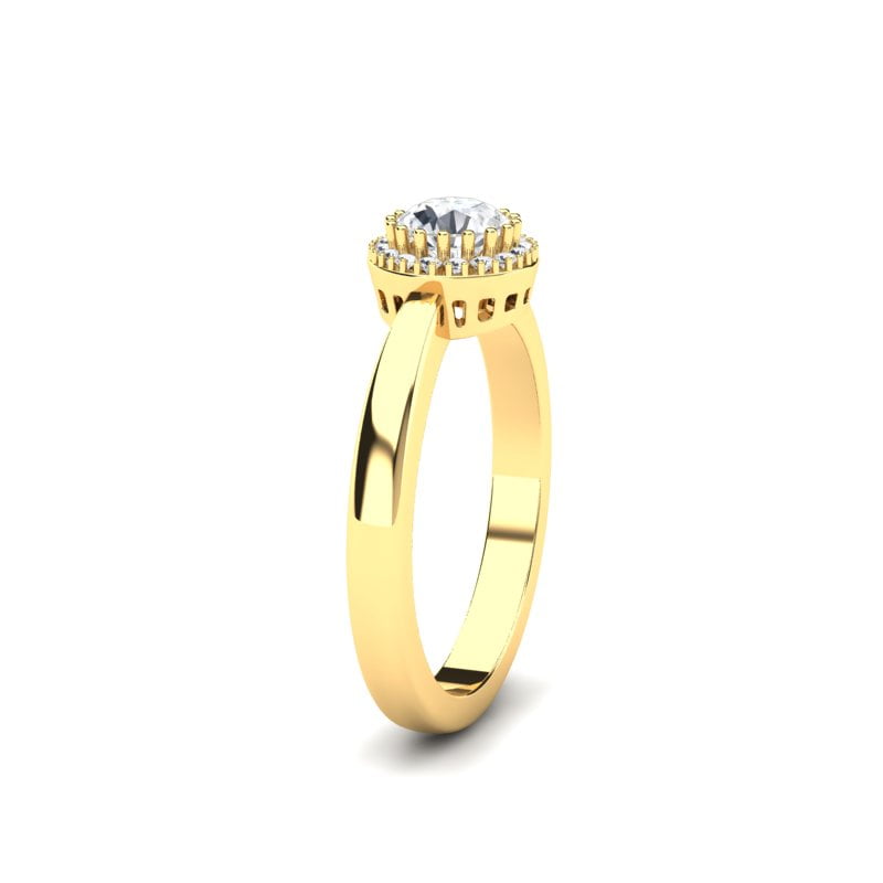 Verenički prsten od žutog zlata, bogato ukrašen dijamantima, odiše luksuzom, elegancijom i sofisticiranošću. Ovaj prsten je pravi izbor za one koji žele da njihov verenički prsten bude raskošan, ali sa suptilnom notom sofisticiranosti.
