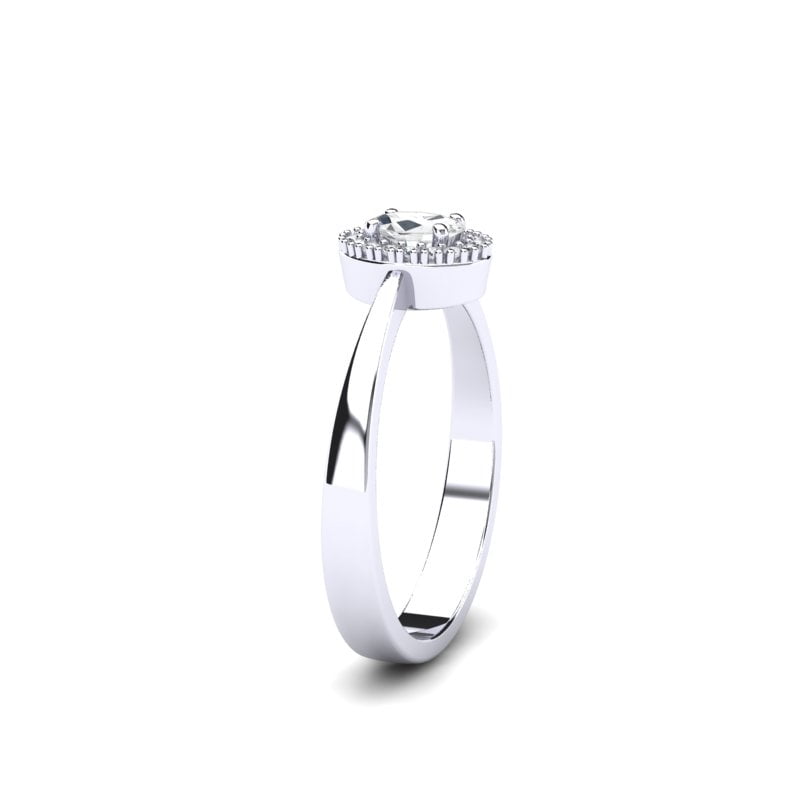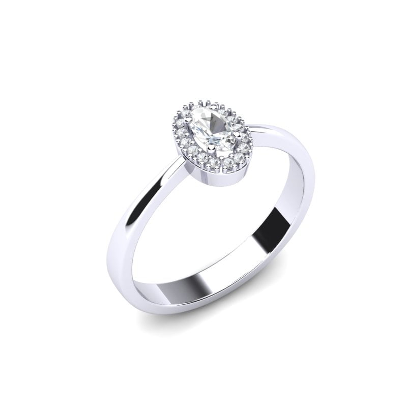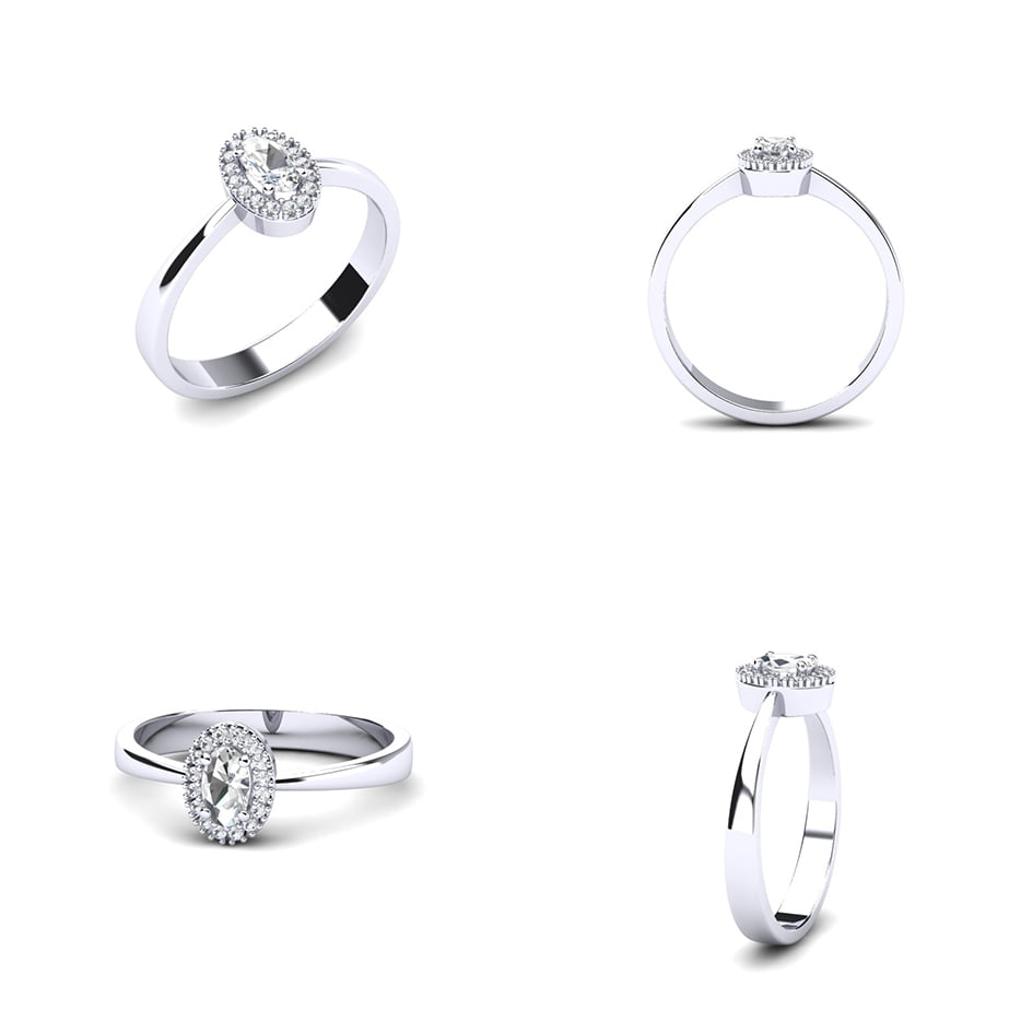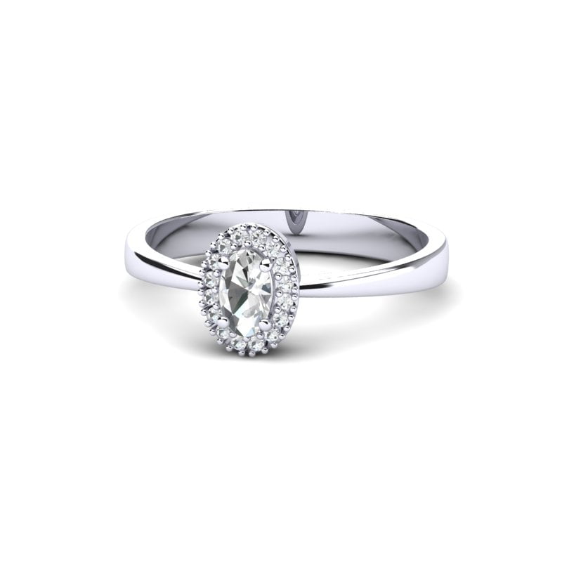 Sitni brilijanti su pažljivo raspoređeni oko centralnog, stvarajući blistav okvir koji dodatno naglašava ovalni kamen. Ovi brilijanti unose dodatni sjaj i dimenziju u dizajn, čineći prsten još raskošnijim i upečatljivijim.