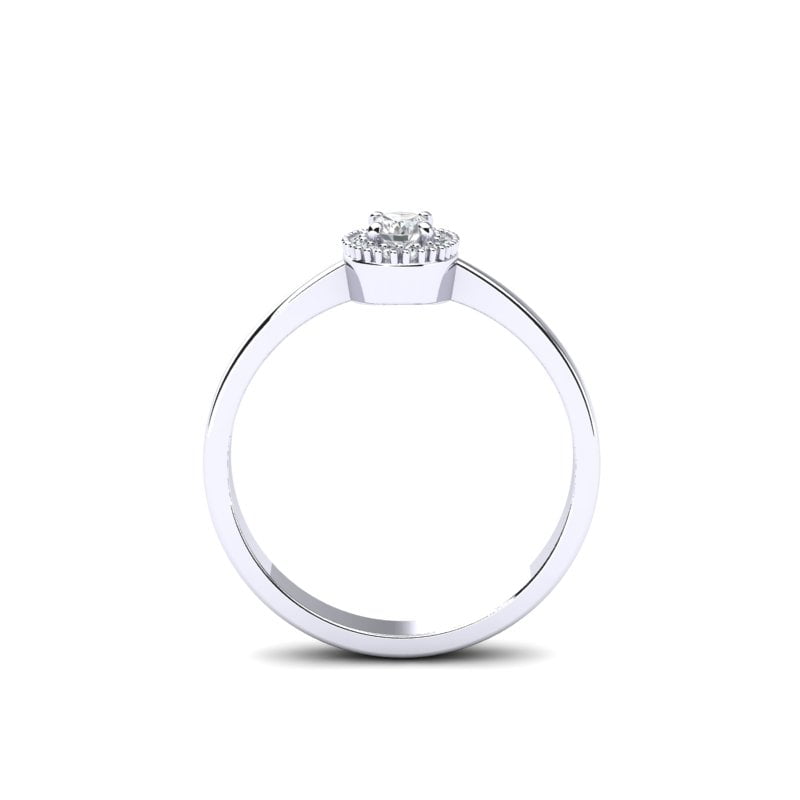 U središtu prstena nalazi se ovalni dijamant, čiji izduženi oblik stvara sofisticiranu i gracioznu siluetu. Ovaj dijamant je poznat po svojoj sposobnosti da maksimalno reflektuje svetlost, pružajući neverovatan sjaj. Njegov oblik dodaje prstenu modernu notu, dok istovremeno zadržava klasičnu lepotu.