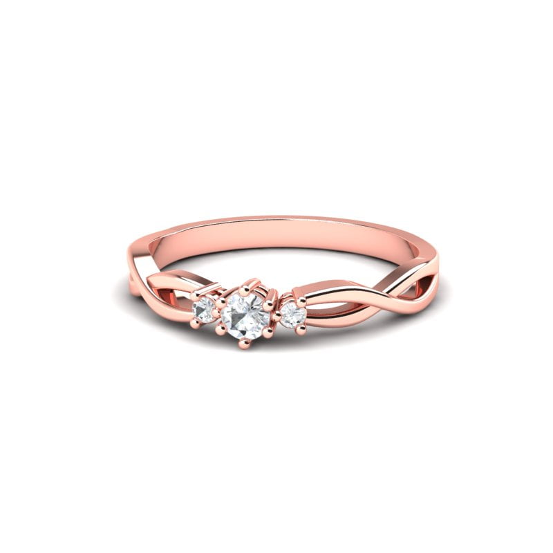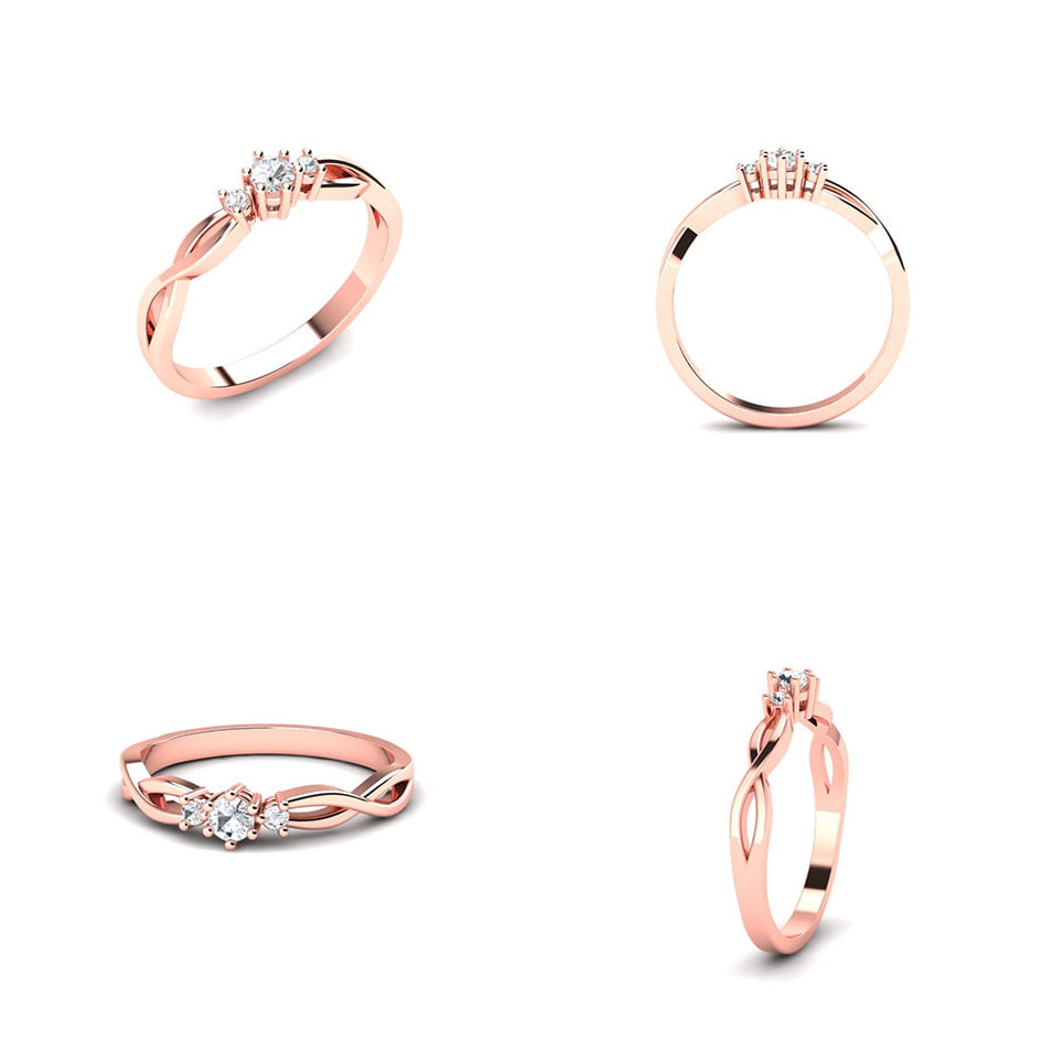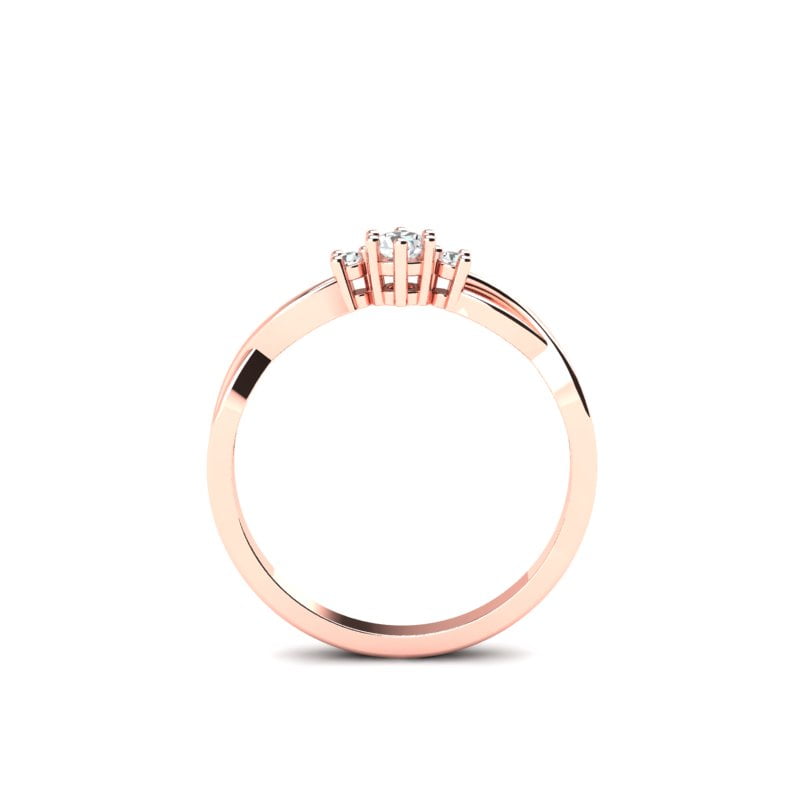 Verenički prsten koji oličava vrhunsku ženstvenost, očaravajući model kome je teško odoleti. Ovaj prsten od roze zlata oduševljava svojom jednostavnom, ali elegantnom lepotom. U njegovom središtu nalazi se prelep centralni dijamant, koji dominira prstenom svojom briljantnošću i čistotom. Sa obe strane centralnog dijamanta nalaze se manji brilijanti, koji dodatno ističu njegovu svetlost i sjaj. Zlato je polirano do savršenstva, čineći prsten besprekorno glatkim i svetlucavim. Dizajn je sofisticiran i klasičan, savršen za romantičan i elegantan izgled, simbolizujući večnu ljubav.