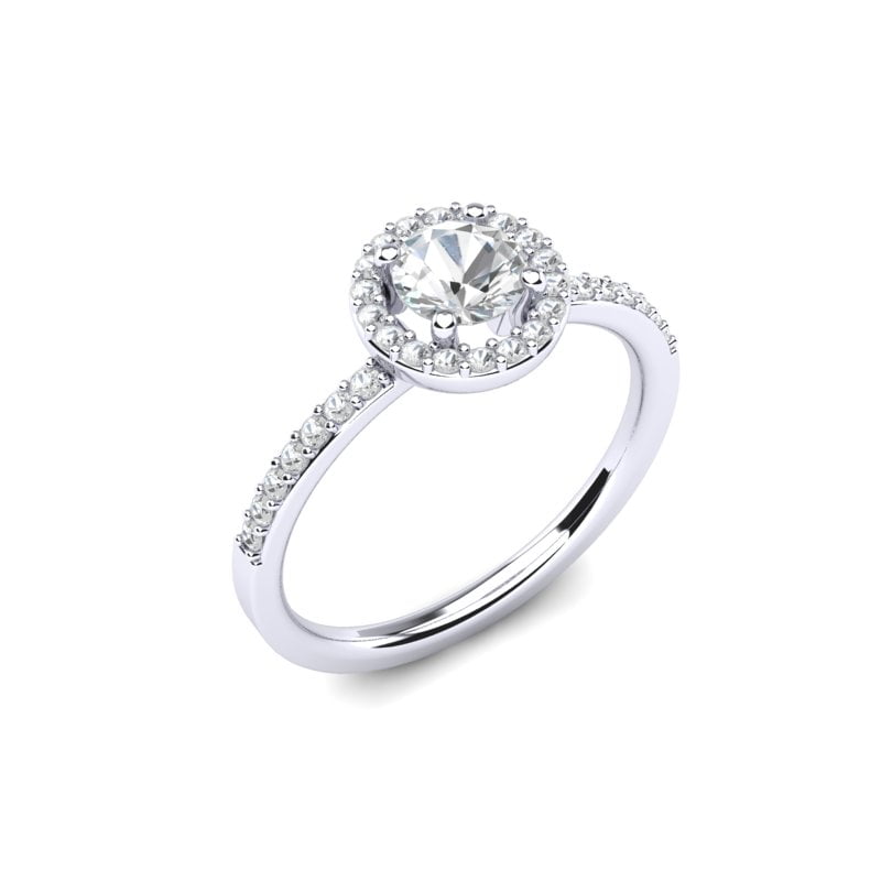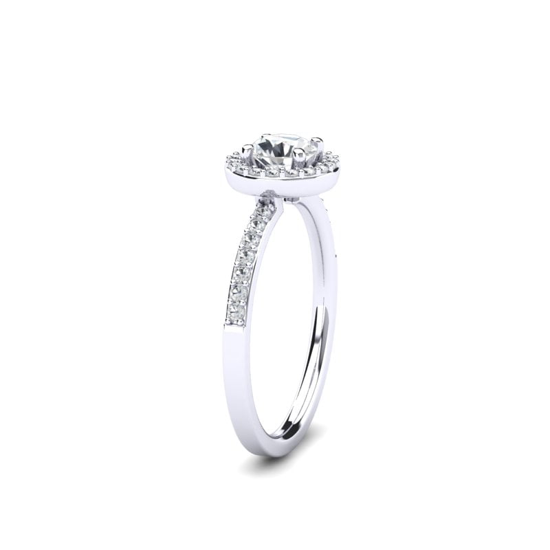Verenički prsten od belog zlata sa centralnim round dijamantom i brilijantima koji ga uokviruju, kao i onima raspoređenim duž šine prstena, odiše luksuzom, blistavošću i romantičnim šarmom.