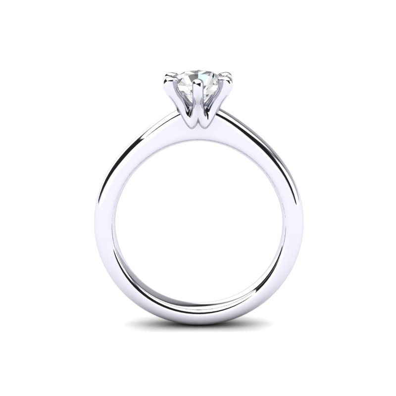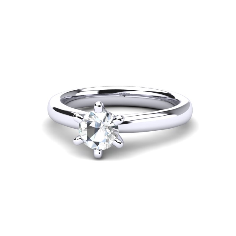 Verenički prsten od belog zlata sa dominantnim dijamantom izgleda prelepo i elegantno. Centralni element prstena je prirodni dijamant, postavljen u središte, koji svojim blistavim i čistim izgledom odmah privlači pažnju. Šest krapne čvrsto drže dijamant na mestu i omogućavaju da svetlost prolazi kroz kamen sa svih strana, čineći ga još svetlijim i atraktivnijim.