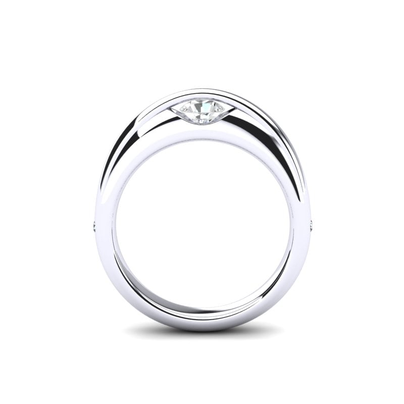 Moderan verenički prsten od belog zlata sa centralnim round dijamantom predstavlja spoj inovativnog dizajna i klasične elegancije.