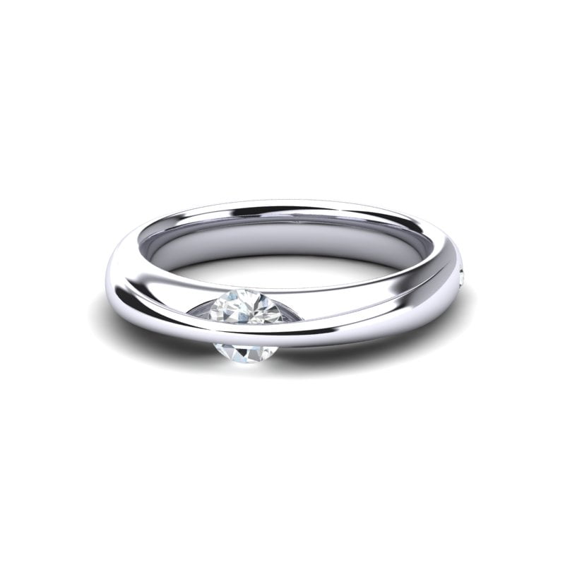 Belo zlato dodatno naglašava modernost i čistoću dizajna, dok diskretne linije prstena ostavljaju prostor da rotirajući dijamant u potpunosti dođe do izražaja.