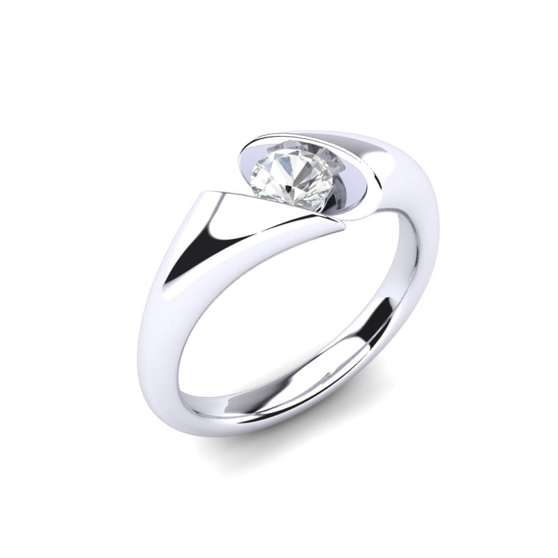 Asimetrija šina daje osećaj pokreta i fluidnosti, dok belo zlato pruža moderan sjaj i neutralnu pozadinu koja dodatno ističe svetlucavost kamena.