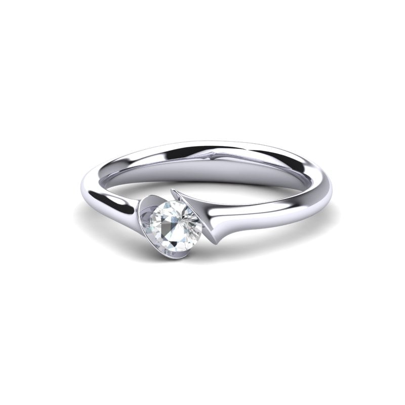 Asimetričan dizajn daje ovom prstenu dinamiku, dok hladan sjaj belog zlata ističe čistotu i svetlucavost dijamanta. Rezultat je moderan, umetnički izrađen komad nakita koji priča priču o dvoje različitih ljudi povezanih istom emocijom.
