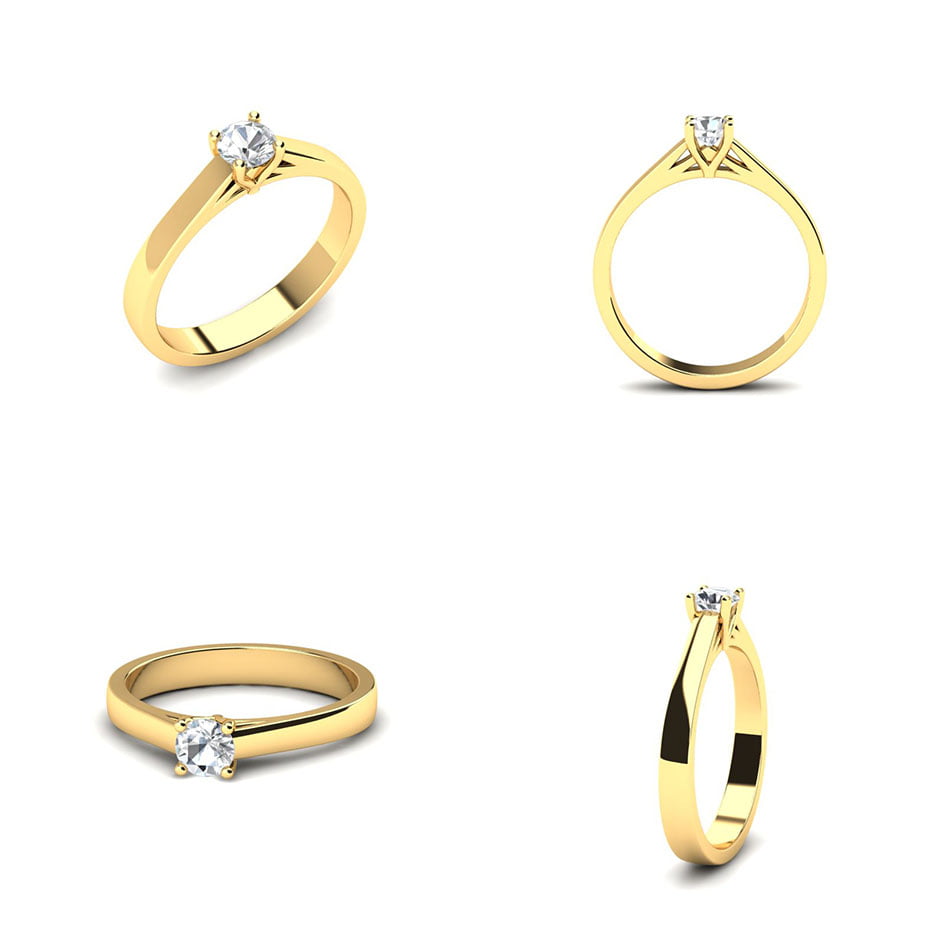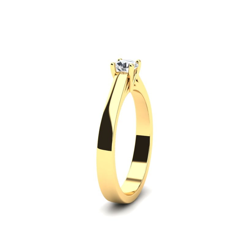 Žuto zlato pruža moderan, topli ton koji savršeno upotpunjuje blistavost dijamanta i daje prstenu sofisticiran, savremen izgled. Tanke, čiste linije prstena čine ga idealnim za svakodnevno nošenje, ali i dovoljno svečanim za posebne prilike.