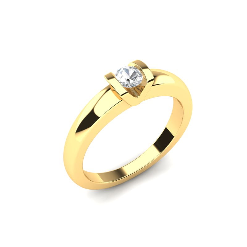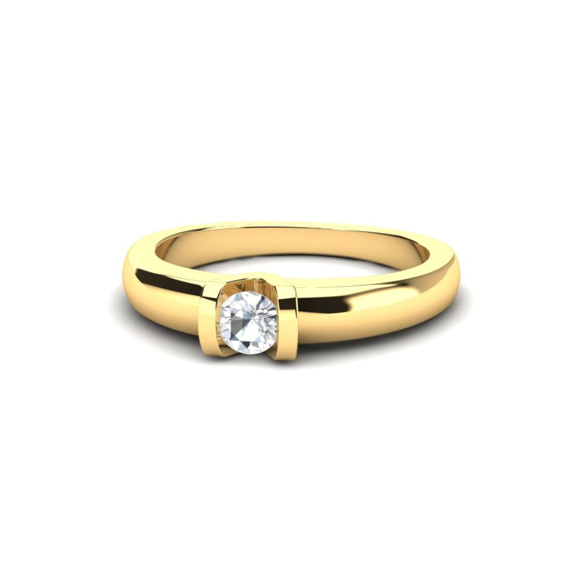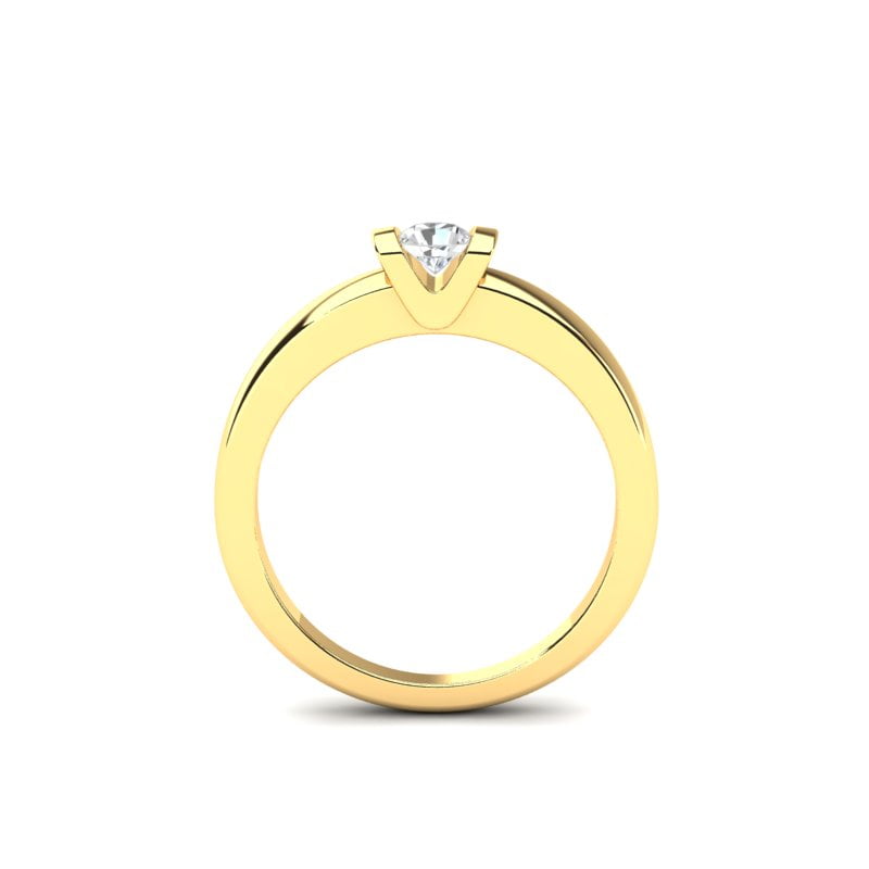 Prsten od žutog zlata sa prirodnim okruglim dijamantom predstavlja pravi simbol elegancije i sofisticiranosti, spajajući klasičnu lepotu sa savremenim dizajnom. Njegova pažljivo oblikovana, glatka i polirana površina od žutog zlata pruža nežan, ali upečatljiv sjaj. Prirodni dijamant, smelo postavljen u fasung, zauzima centralno mesto na prstenu.